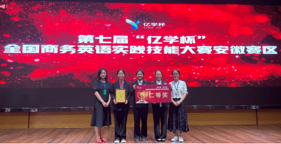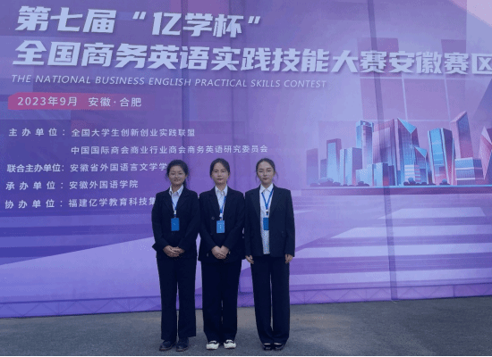 本网讯 9月9日,第七届“亿学杯”全国商务英语实践技能大赛在安徽外国语学院顺利落幕。由外国语学院商务英语系李慧、刘姣姣老师指导,学生高美琪、古玉珍、江海静(2020级商务英语)、尹瑜(2021级商务英语)组成的参赛团队取得了安徽省二等奖的优异成绩。