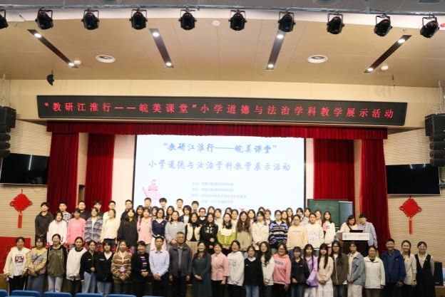 为进一步提升思想政治教育专业师范生人才培养质量,马克思主义学院创新课堂教学模式,将“学科教学设计与实施”课堂搬到“教研江淮行一皖美课堂”小学道德与法治学科教学展示与教研活动现场,让学生面对面体会省级教学名师的教学风采和专家学者的研究成果,进一步促进师范生教学技能提升。10月11日,在教务处的大力支持下,2022级思想政治教育班全体同学在授课教师傅文茹和姜彩红的带领下,全程参与“教研江淮行一皖美课堂”小学道德与法治学科教学展示活动。