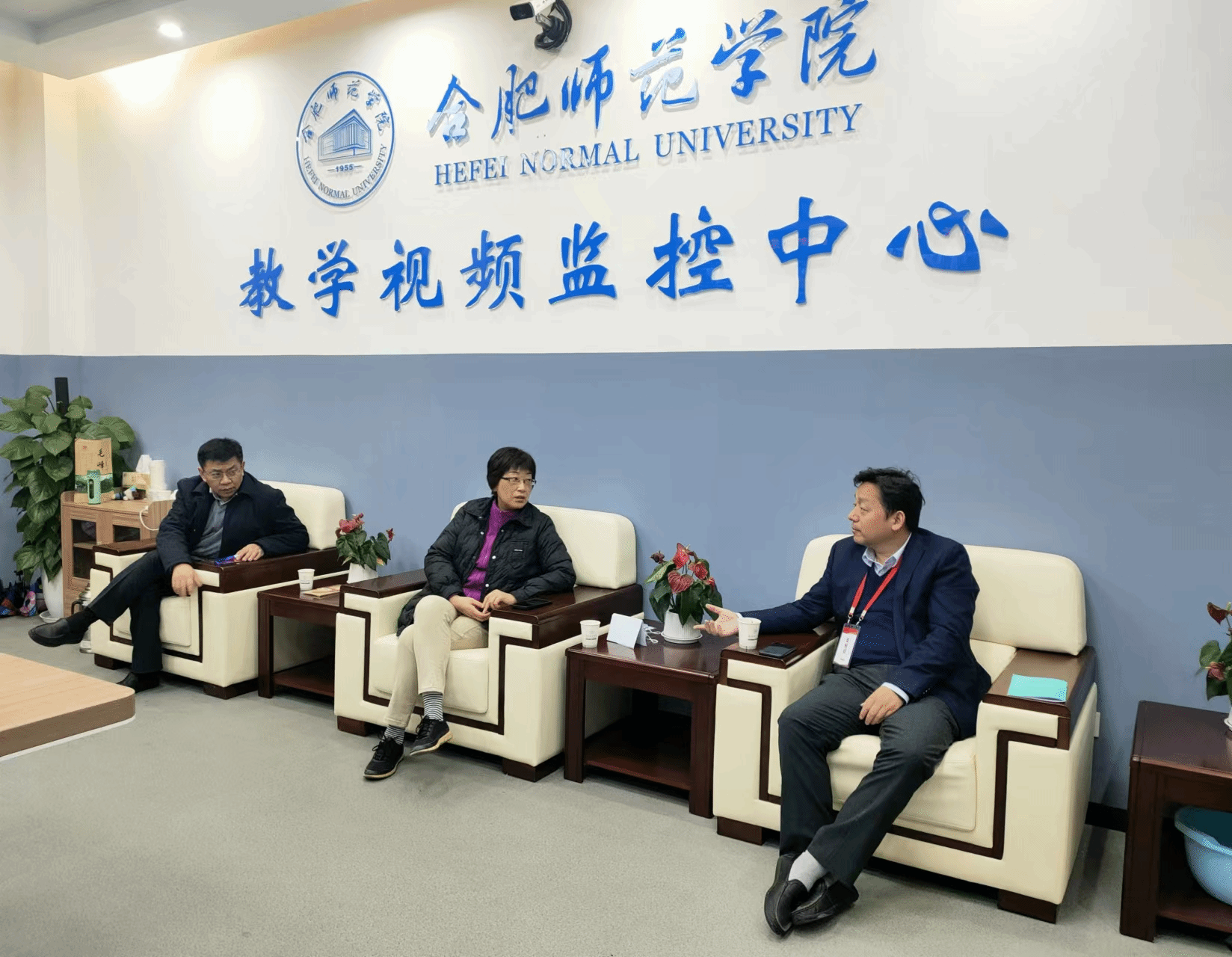 面试期间,省教育厅副厅长刘业勋、师资处处长余亦祥,合肥市教育局副局长胡光喜等领导在党委副书记、院长方东玲,党委委员、副院长周端明陪同下考察了我院考点工作。刘业勋一行察看了考生面试过程,听取了工作汇报,了解各项工作进展情况,并就面试考点建设、考务组织、网络与服务保障等内容与考生及工作人员进行了交流。刘业勋在教学视频监控中心与院领导进行交流,充分肯定了我院考点建设与管理规范,体现出良好的考试秩序、考风考纪和严谨的工作作风。