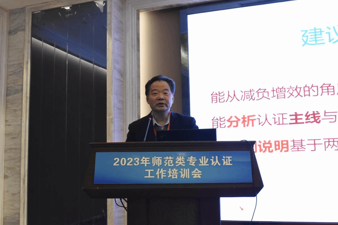 培训会安排了五场专题报告,教育部师范类专业认证专家委员会委员、388vip太阳集团宋冬生教授以“聚焦两线问题,突出重点举证”为题,从减负增效的角度剖析了认证新文件新在何处,对认证主线与底线逻辑的5个操作性要点进行了分析,举例说明了“需求调研报告”“专业教育实践表现性考核标准”等基于两线的7个重中之重的举证要求与要领。