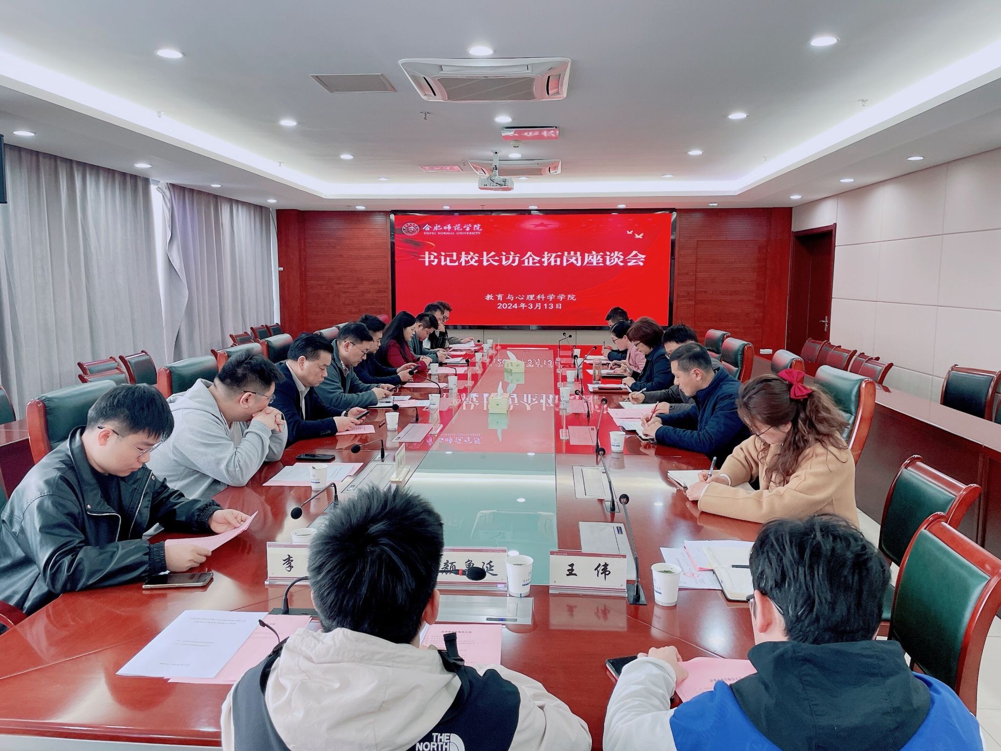 为深入贯彻落实党中央、国务院“访企拓岗促就业”专项行动工作部署要求,对接企业用人需求,优化人才培养方案,拓宽毕业生就业渠道和资源,打通校企就业供需的“最后一公里”,全力促进毕业生更加充分更高质量就业,3月13日下午,学院在行知楼2008会议室组织召开书记校长访企拓岗座谈会。院党委副书记、院长方东玲出席会议并讲话,就业创业工作处处长李健,教育与心理学学院党委副书记陈帅帅,副院长胡连峰及舒城县龙河中学等十余家用人单位代表参加座谈会。会议由教育与心理科学学院党委书记董萍主持。