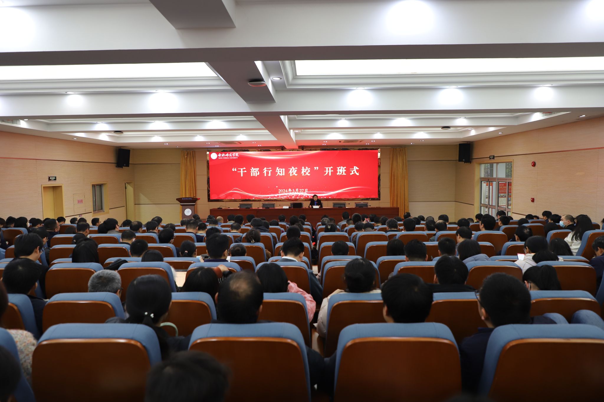 为深入学习贯彻习近平新时代中国特色社会主义思想和党的二十大精神,落实干部教育培训工作条例及全国、全省干部教育培训规划,提高干部队伍的政治素养和履职能力,3月27日晚,学院在锦绣校区学术报告厅举行“干部行知夜校”开班式,全体处科级干部、党支部书记、党务秘书近300人参加,院党委副书记梁立昌主持开班式。