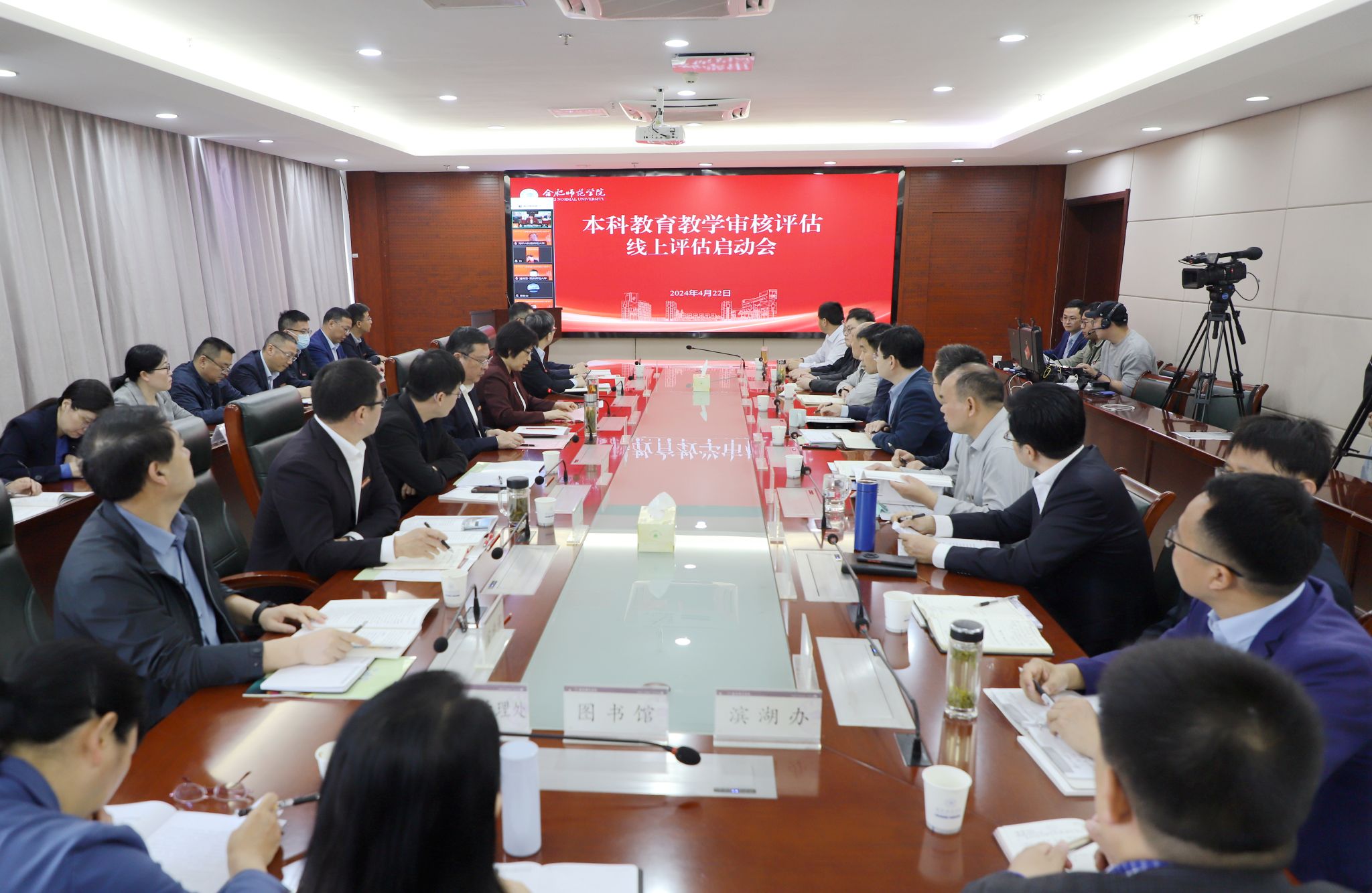 4月22日上午,学院召开本科教育教学审核评估线上评估启动会,会议采用线上线下相结合的方式进行。以陕西师范大学原副校长党怀兴教授为组长的本科教育教学审核评估专家组全体成员,安徽省教育厅高等教育处处长高原,院党委书记徐成钢,党委副书记、院长方东玲,党委委员、副院长华银峰、周端明等出席会议。各职能部门主要负责人,各二级学院党政主要负责人,教学督导、教师、辅导员代表参加会议。会议分两个阶段进行,第一阶段由方东玲主持,第二阶段由专家组组长党怀兴主持。
