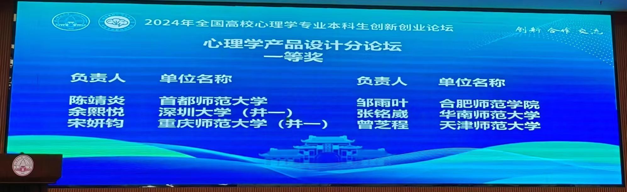 我院学子在2024年全国高校心理学专业本科生创新创业论坛喜获一等奖