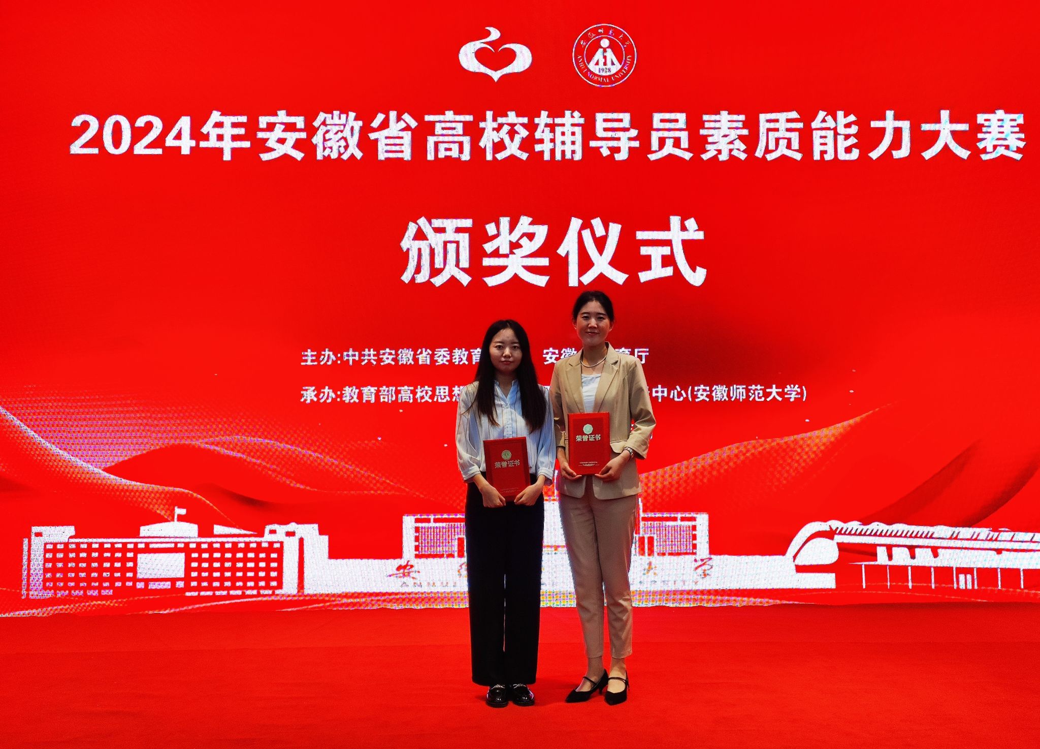 5月9日至11日,由中共安徽省委教育工委、安徽省教育厅主办,教育部高校思想政治工作队伍培训研修中心(安徽师范大学)承办的2024年安徽省高校辅导员素质能力大赛决赛圆满落幕。我院美术与设计学院辅导员史娌娇荣获二等奖,物理与材料工程学院辅导员张玲俐荣获三等奖。