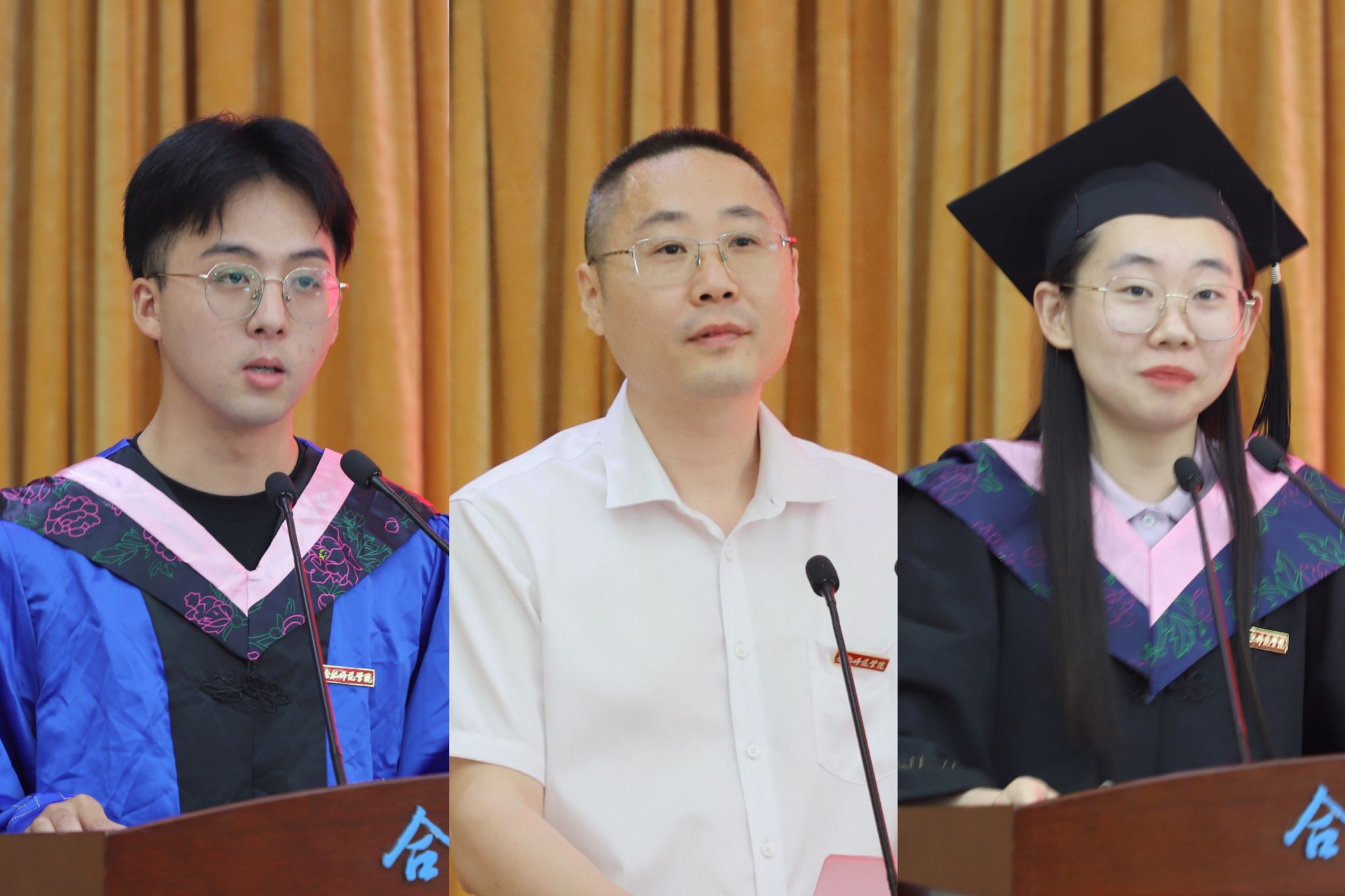 教师代表、生物与食品工程学院教授王占军发言,他希望毕业生们用法律法规定位人生方向,做一个遵纪守法的人;心怀感恩看待社会,做一个懂得感恩的人;敢于有梦、勤于圆梦,做一个勇于追梦的人;珍惜健康、常回家看看,做一个爱惜身体的人。硕士毕业生代表、数学与统计学院张骞,本科毕业生代表、外国语学院王梦瑶先后发言,他们表示将牢记母校教诲,秉持“爱满天下,知行合一”的校训精神,肩负起时代赋予青年人的责任和使命,努力为教育事业和强国建设贡献青春芳华。