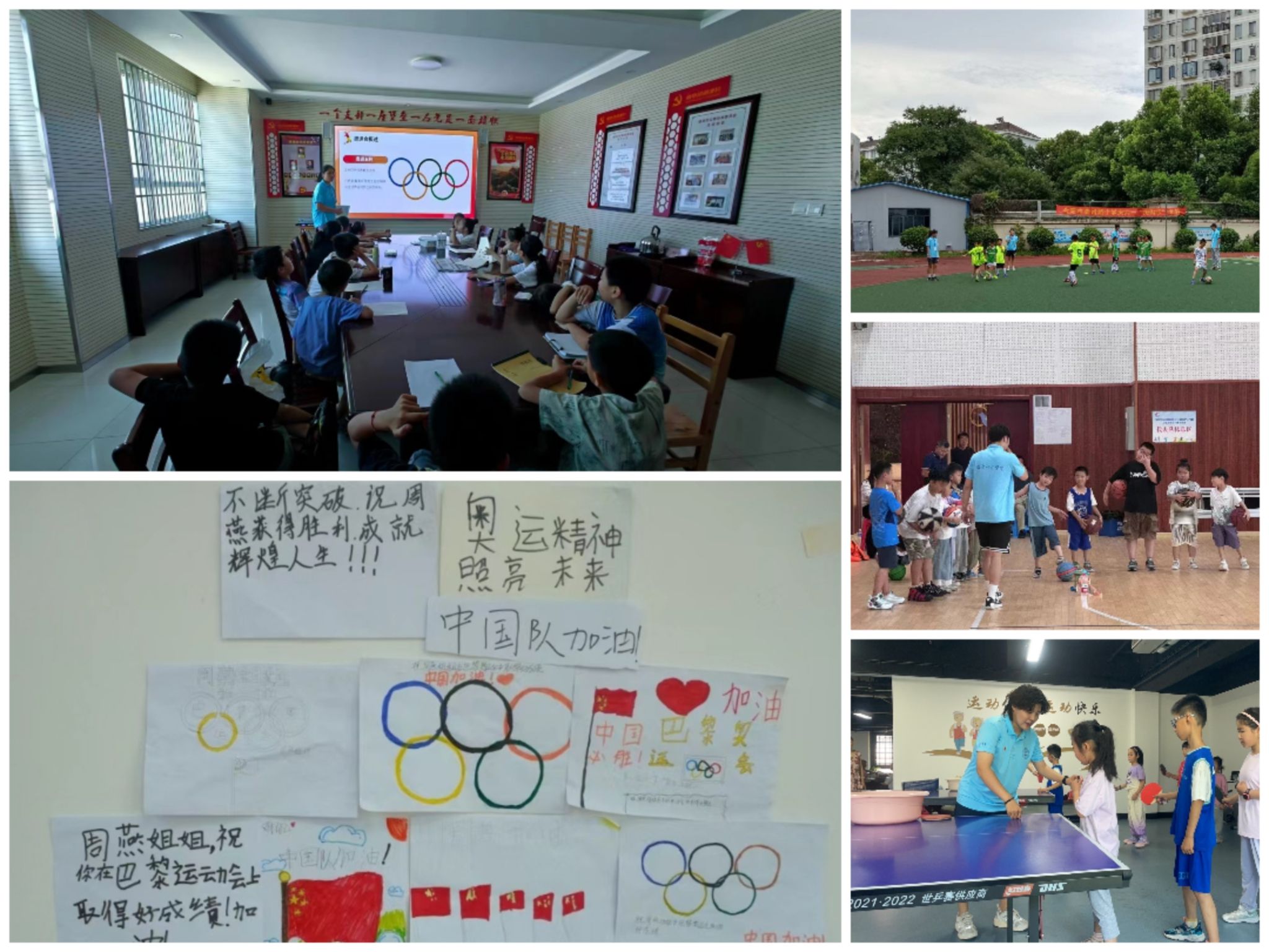 在安徽省宣州区、长丰县、涡阳县、南陵县、泾县以及江苏省邗江区等地的“行知学堂”里,"小先生"为小学员们讲解奥运五环的意义以及“更快、更高、更强——更团结”的奥林匹克精神,介绍中国健儿奋勇争先、永不放弃的感人故事,小学员们还一起画着五星红旗、五环图案和北京奥运会、巴黎奥运会等标志性建筑,用心感受奥运的精神和体育的魅力。