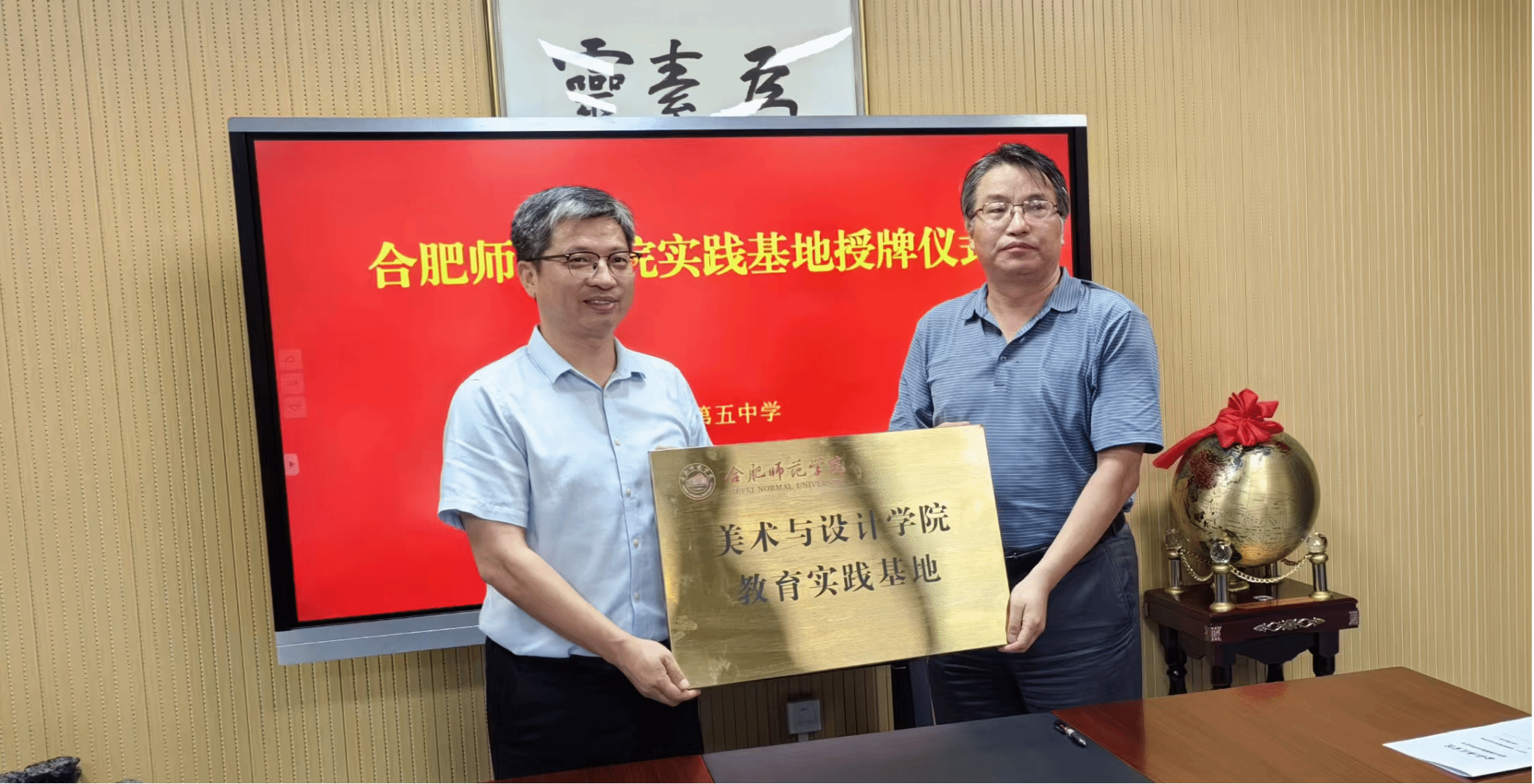 双方在热烈友好的氛围中签订了《优质生源基地共建协议》《教育实践基地共建协议》,华银峰代表学院为合肥五中授牌“教育实践基地”“优质生源基地”,合肥五中还向我院“阅+历”读书讲堂捐赠了600张版画藏书票《等待花开》。