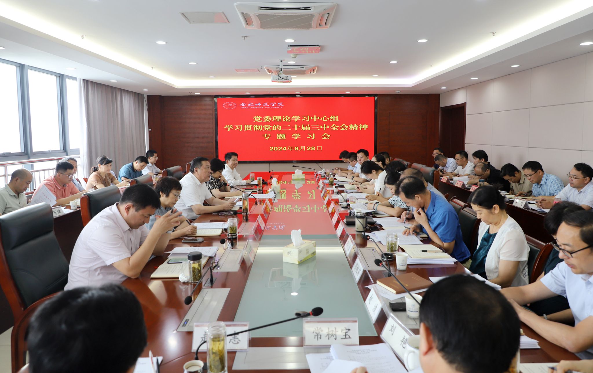 8月28日上午,学院在行知楼2008会议室举行党委理论学习中心组学习贯彻党的二十届三中全会精神专题学习会。党委书记徐成钢主持会议并讲话。党委理论学习中心组成员,各院系级党委(党总支、直属党支部)书记,各学院院长,各部门主要负责人参加学习。