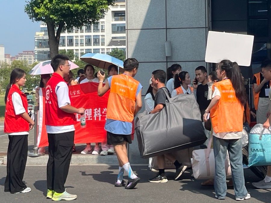 在校园内,到处都是迎新志愿者的身影。他们帮助新生搬运行李、分发材料物资、办理报到手续、提供信息咨询、开展随车引导、拍摄“最美定格照”,志愿者们用热情和汗水为新生提供细致周到的服务,帮助新生打消陌生感,迅速适应新环境。