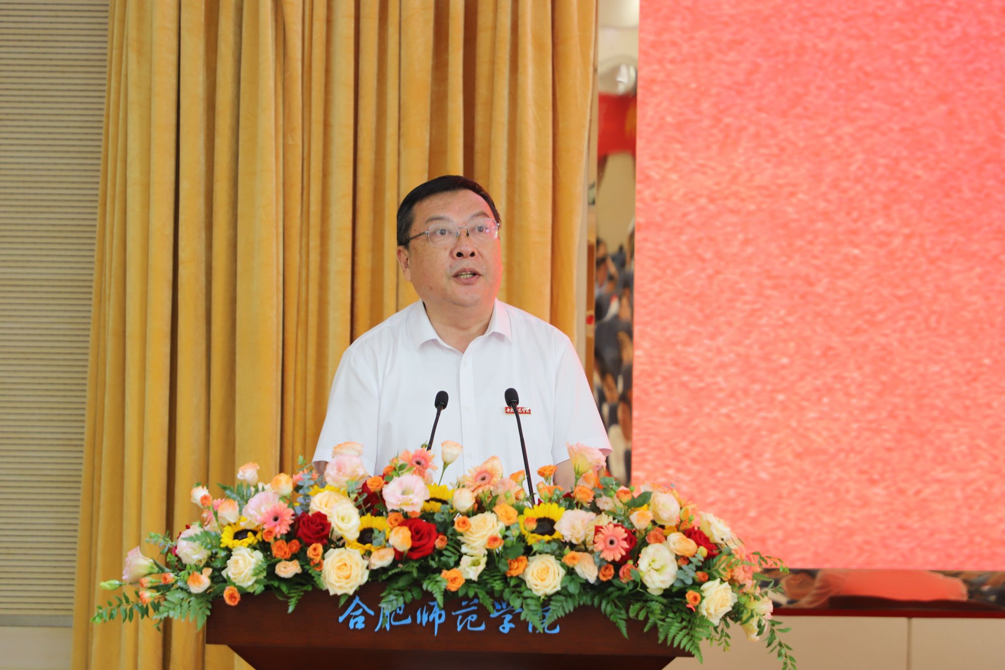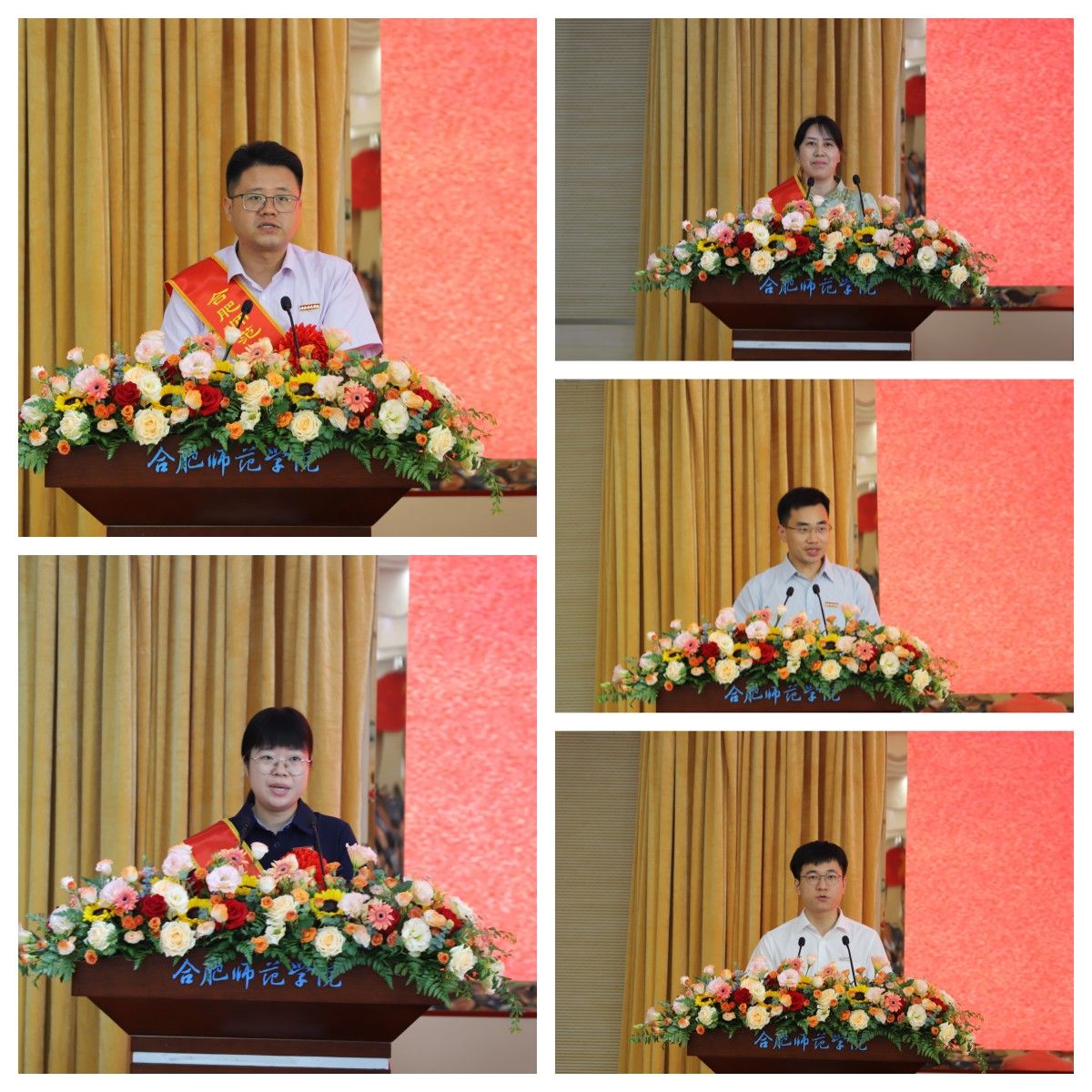 奋进篇中,师生代表发言,展示了合师人向着实现高质量发展,创建合肥师范大学发展目标进发的昂扬精神气质。2024年安徽省优秀教师、电子信息与集成电路学院教授孔勐博士,校第三届“优秀教师”代表、经济与管理学院丁红梅教授,2024年度国家基金项目获得者、生物与食品工程学院副教授蔡旭冉博士发言,畅谈了潜心教学科研,潜心教书育人的感受。学生代表朱幸武同学表达了对老师的感恩之情。