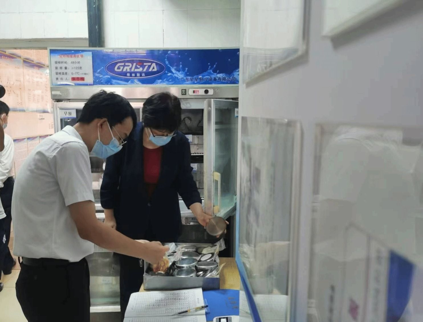 方东玲一行仔细查看了锦绣校区竹园和荷园餐厅的操作间、储藏室、清洗区等关键区域,重点检查了食品加工区、食材储藏区等场所。方东玲详细查阅了食材采购记录、留样记录、餐具消毒记录、从业人员健康管理台账等,仔细了解食堂食品安全各项制度的落实情况,对检查发现的问题进行现场交办,要求限期整改到位。