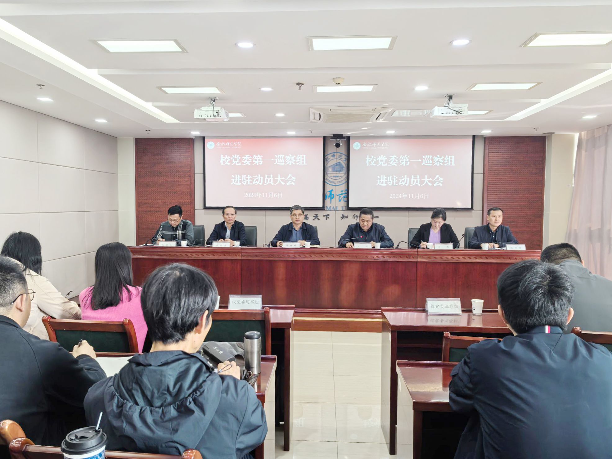 第三轮巡察第一巡察组组长沈辉、第二巡察组组长吕田力就本轮巡察工作的目的意义、主要任务、主要方式等进行了通报,对工作纪律提出了具体要求。被巡察党组织负责人文学院党委书记许锃、计算机与人工智能学院党委书记王祥、美术与设计学院党委书记沙渺、电子信息与集成电路学院党委书记王东明分别作了表态发言。会议最后进行了民主测评和问卷调查。