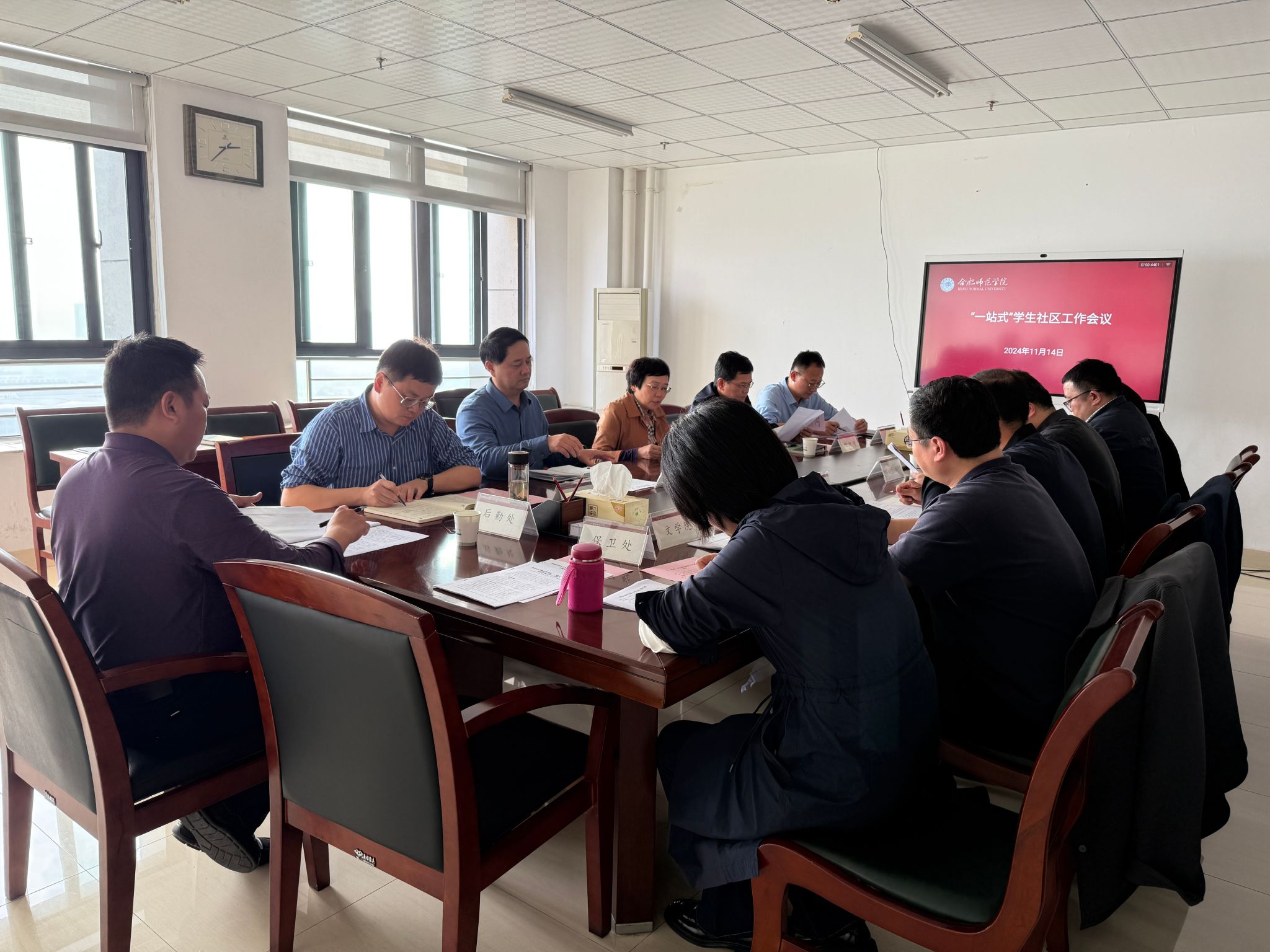 11月13日,学院在锦绣校区行知楼召开“一站式”学生社区建设工作会议。院党委副书记梁立昌,组织部、宣传部、教务处、后勤处、学生工作部、团委及有关二级学院负责人参加会议。