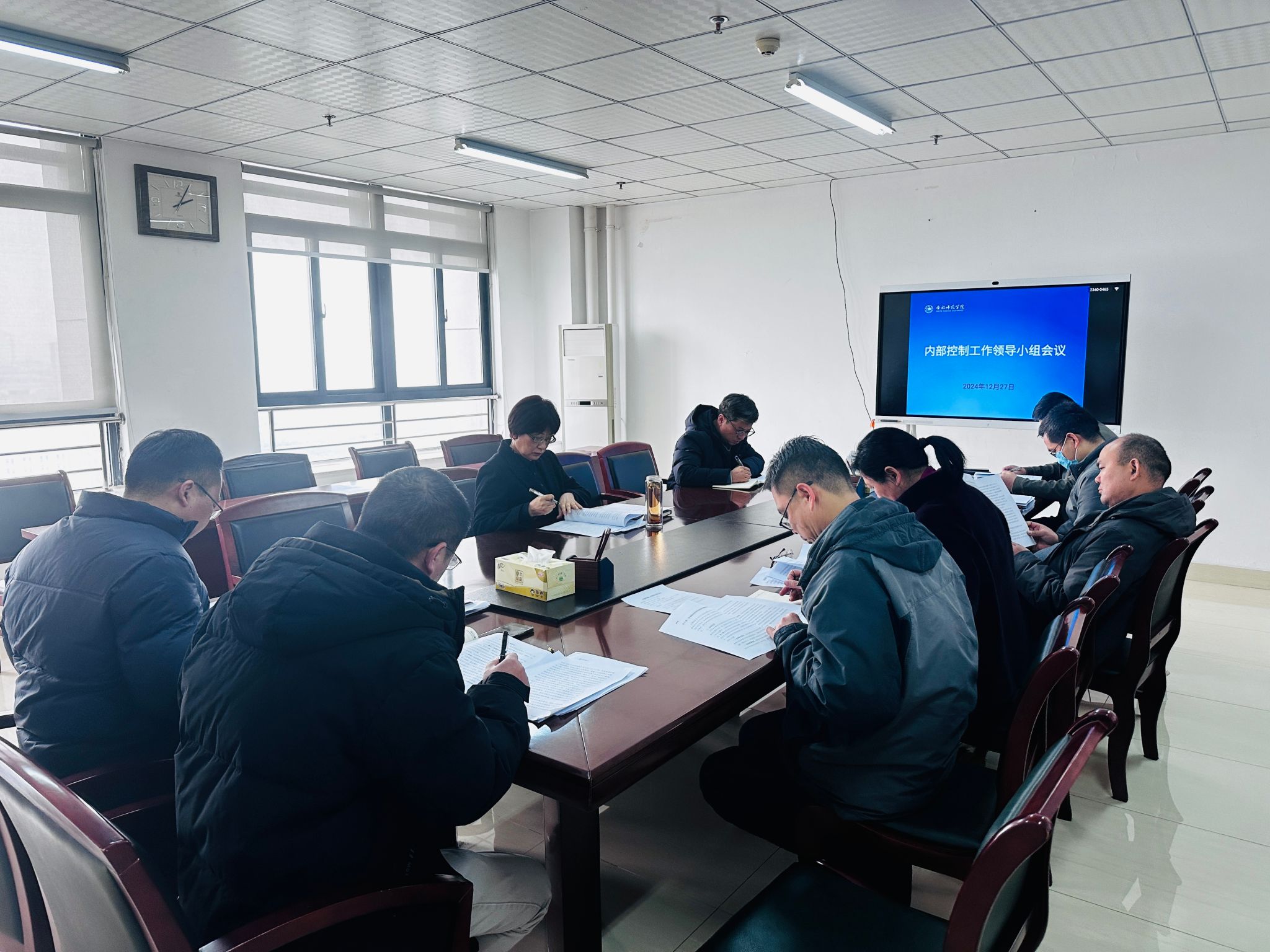 会上,学院内部控制工作领导小组办公室领学了《关于印发<关于进一步加强高等学校内部控制建设的指导意见>的通知》(财会〔2024〕16号)文件的重点内容,随后汇报了2024年学院内控工作开展情况,各成员单位也就本单位的相关内控工作展开了交流讨论。