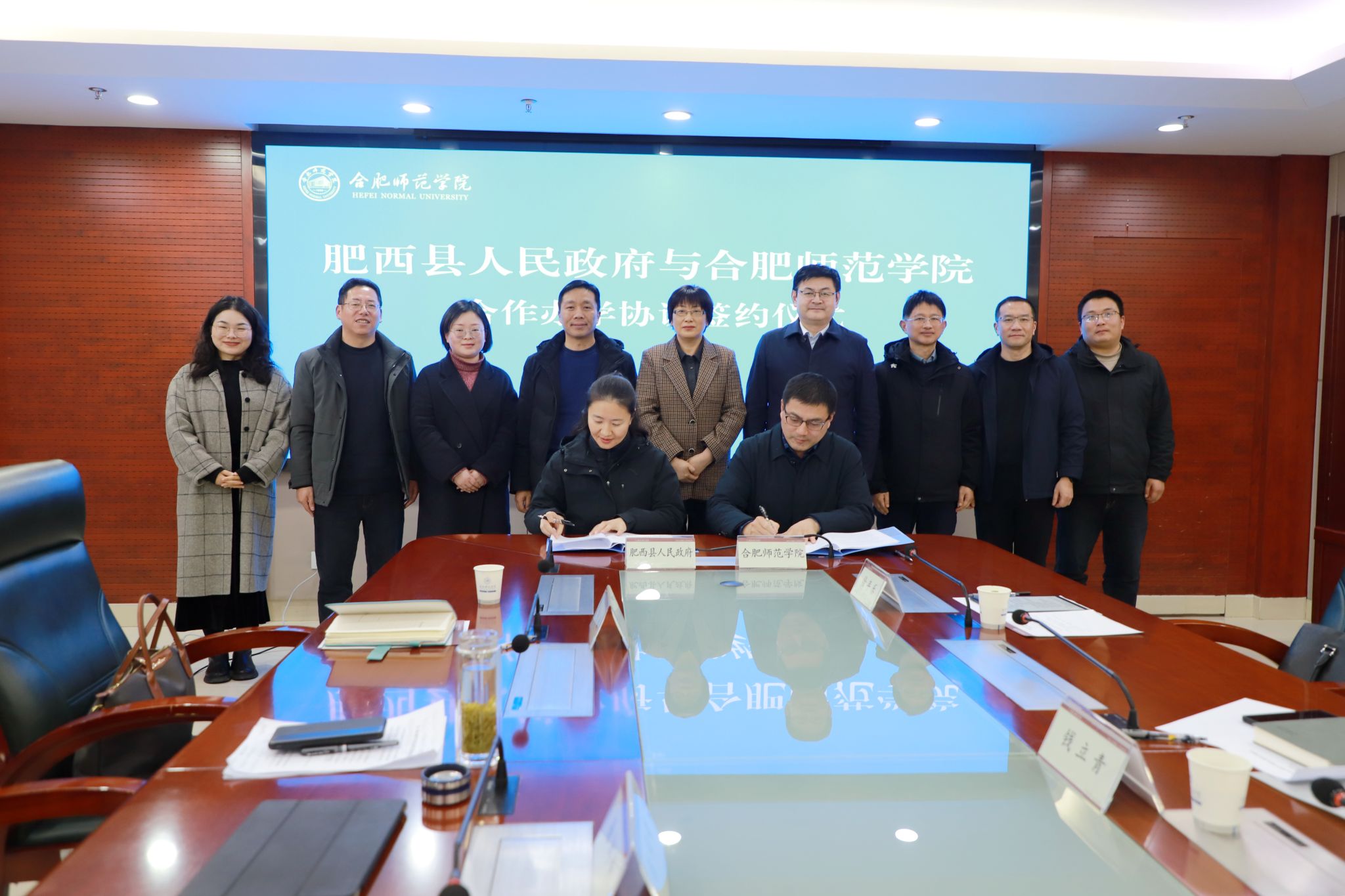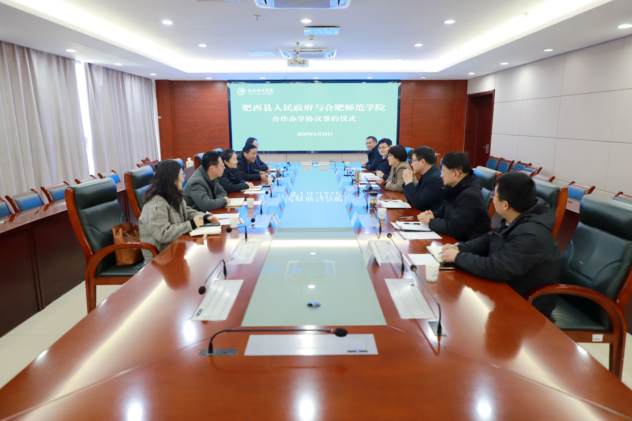 2月24日下午,肥西县人民政府副县长牛一萍,肥西县教育体育局、桃花镇等单位负责同志一行前来学院,参加肥西县人民政府与388vip太阳集团合作办学签约仪式。院党委副书记、院长方东玲,党委委员、副院长周端明,教务处、就业创业工作处、合肥基础教育研究院以及附属西安路学校的相关负责人参加了签约仪式。签约仪式由周端明主持。