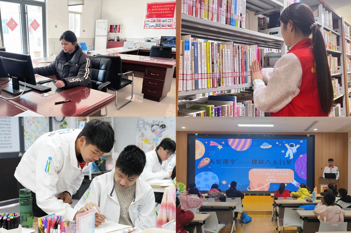 化学与制药工程学院张聪参与枞阳县“春风送岗?枞聚英才”春风行动,引导企业按区域布置展台,帮助求职者了解招聘岗位详情和求职流程。电子信息与集成电路学院杜思远向金寨县袁岭服务中心报到,在袁岭村部参加防火安全教育活动,向乡亲们宣传冬季电器使用注意事项、灭火器使用方法及火灾逃生方法。经济与管理学院邢文件参加无为市寒假“行知学堂”活动,开启辖区双职工子女托管模式,为他们提供素质拓展、兴趣培养、课业辅导等服务。马克思主义学院胡丹向萧县圣泉镇郭庄社居委报到,参加垃圾清扫等村容村貌整治工作,共同营造庭院整洁、村庄美丽、生态宜居的人居环境。生物与食品工程学院李志茹向河南省濮阳市范县共青团组织报到,深入乡村开展青少年心理健康讲座、老年人慢性病预防科普、烟花爆竹燃放安全指导及防范养老诈骗宣传活动。体育科学学院胡少龙入选无为市“圆梦工程”农村未成年人心理健康志愿服务团队成员,面向未成年人开展了“心宣讲”“心体验”“心科普”等活动,引导孩子们在课程游戏中感知情绪困扰,在场景互动中寻找化解矛盾的方法。音乐学院张亚涵向铜陵市天井湖曙光应急救援中心报到,在接受应急救援知识及技能培训后,参与乘船巡湖进行安保巡逻、天井湖湖面垃圾清扫等工作。
