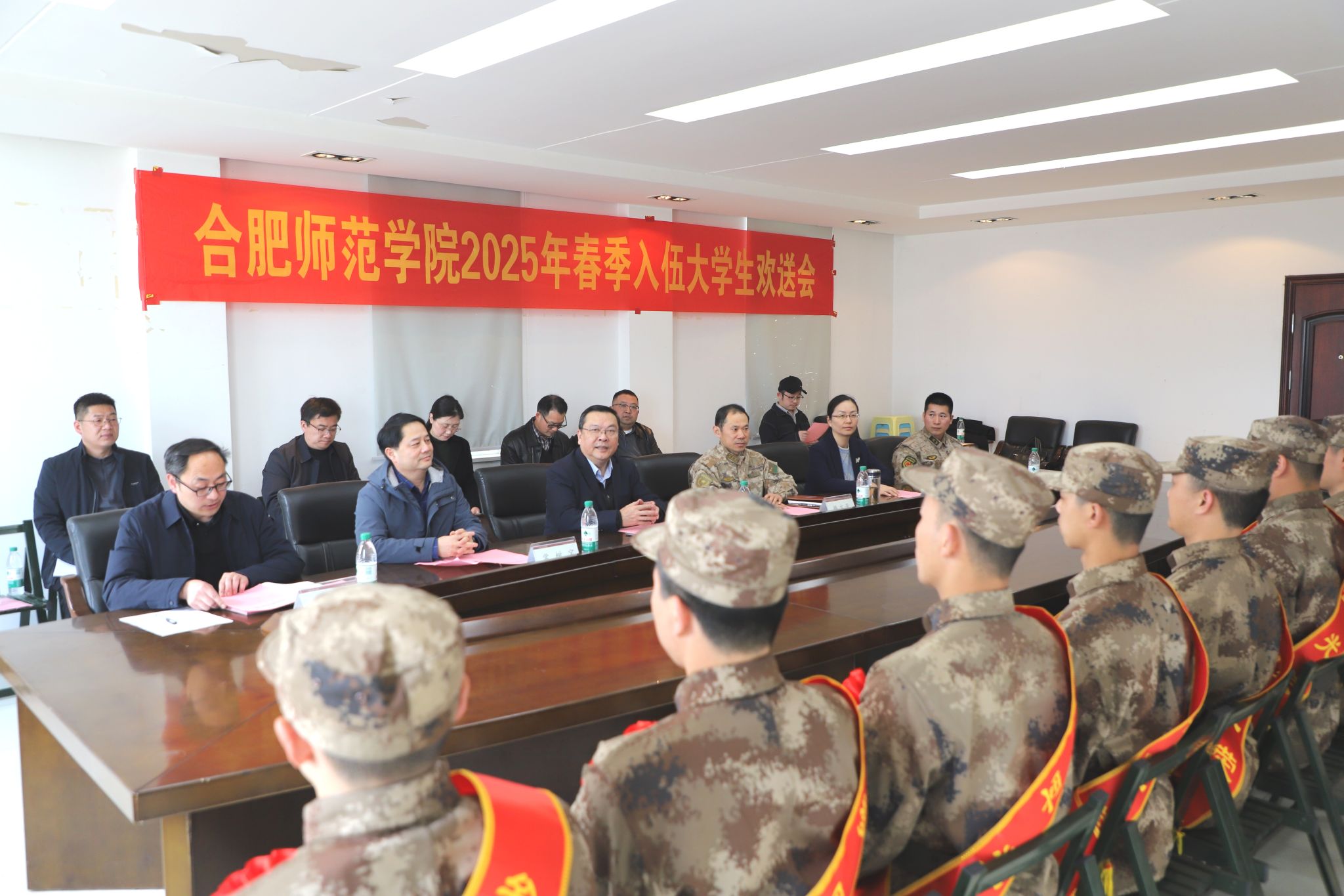 3月11日下午,学院2025年春季应征入伍毕业生欢送会在合肥市警备区教导队举行。院党委书记徐成钢,党委委员、宣传部、统战部部长常树宝,合肥市庐阳区人武部部长韩方景,庐阳区三孝口街道党工委书记桑田,庐阳区三孝口街道人武部部长刘志杰,相关二级学院党委书记、辅导员代表,2025年春季应征入伍毕业生参加会议。会议由学生工作(部)处、人武部部长赵波主持。