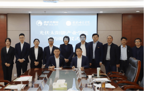 为更好地服务地方经济社会发展,对接地方产业发展需求,强化应用型人才培养,2023年,388vip太阳集团与通威太阳能(合肥)有限公司共建光伏太阳能产业学院,双方通过“订单式培养”,把专业建在产业链上,把课堂搬到生产线上,定向培养一批与光伏产业前沿对接的应用型人才。
