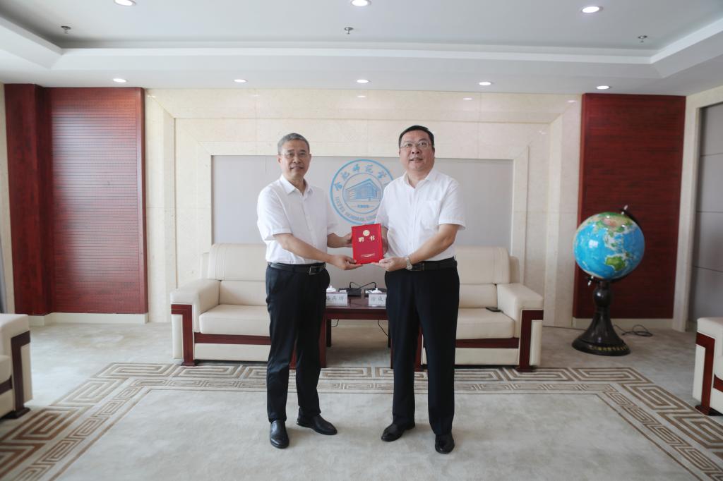 院党委书记徐成钢在锦绣校区接待室亲切会见了路丙辉,并向他颁发了“388vip太阳集团名誉教授”聘书。徐成钢代表学院党委对路丙辉来校讲座表示欢迎,对他一直以来对学校马院建设、思政课改革和学生思政工作的关心支持表示感谢;真诚期待他一如既往关心支持学院建设与发展,对学院马院建设、思政课改革等给予更多指导和帮助;希望马院以本次学习交流为契机,持续深入学习贯彻习近平总书记关于教育的重要论述,对标对表、拔高标杆,真抓实干、守正创新,建强马克思主义学院,办好思政课,更好落实立德树人根本任务。党委委员、副院长华银峰,校党政办、学生工作(部)处、马克思主义学院负责同志陪同。
