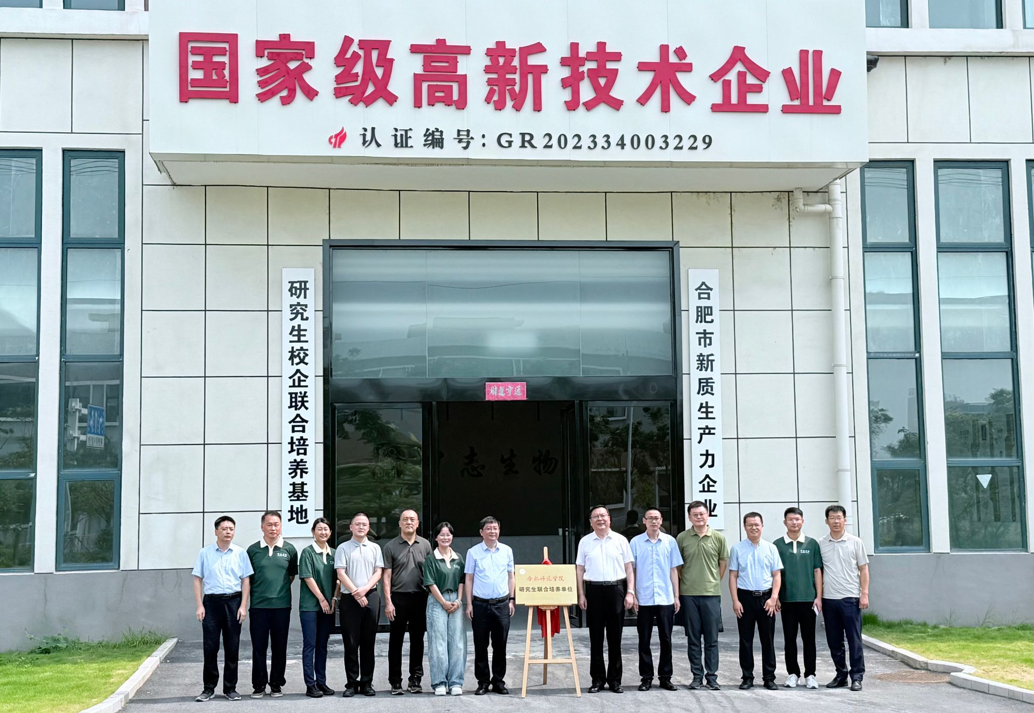 在中志生物科技(安徽)有限公司,徐成钢一行实地参访了企业的生产车间与研发中心,详细了解企业的核心技术、产业布局及人才需求。随后,徐成钢与沈勇共同为研究生联合培养基地揭牌。