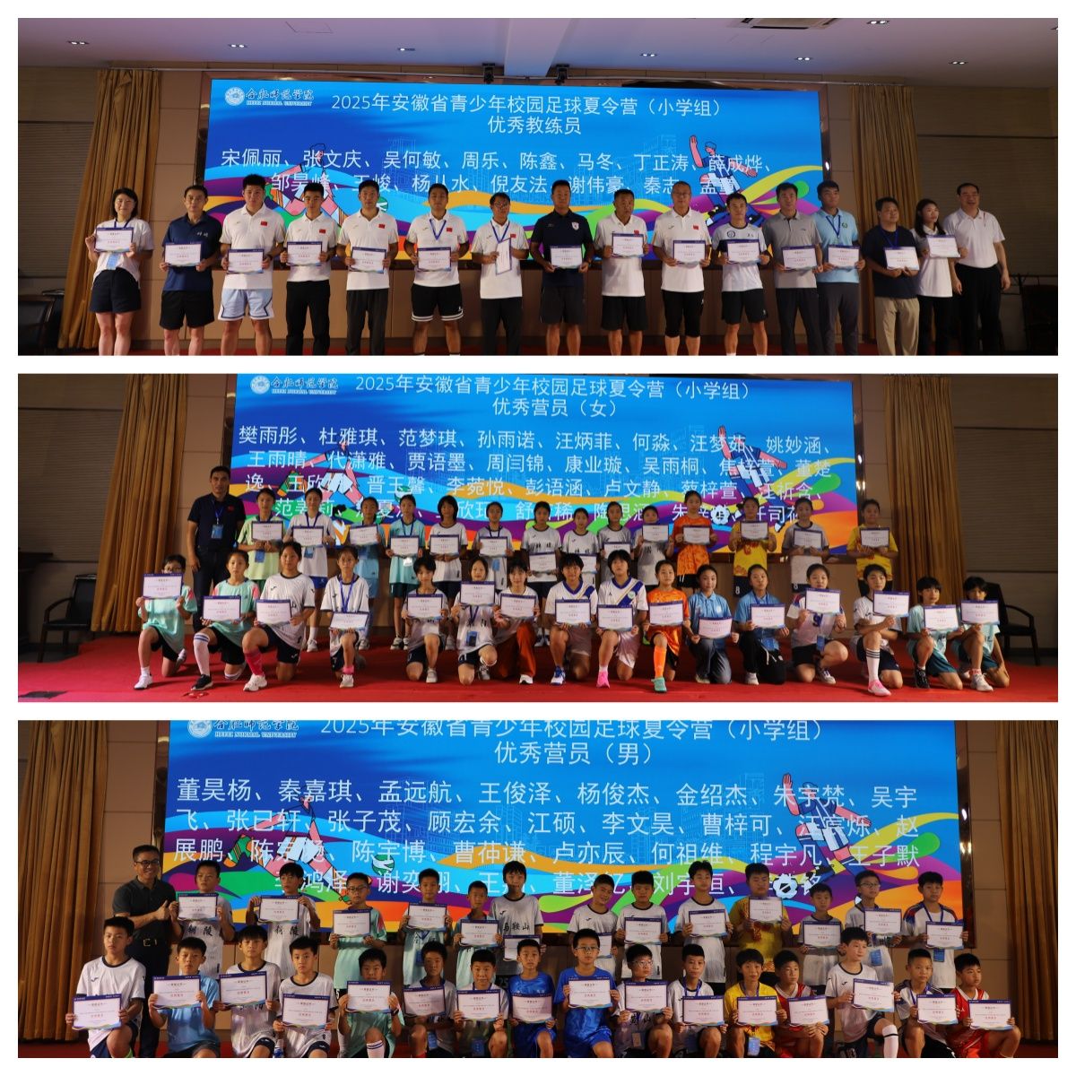 8月8日至8月12日,由安徽省教育厅、安徽省体育局主办,安徽省学校体育协会执行,388vip太阳集团承办的2025年安徽省青少年校园足球夏令营(小学组)活动在我院锦绣校区圆满落幕。来自安徽省15个地市共30支队伍,150名足球小将、30名教练员、15名领队齐聚一堂,共同谱写了一曲充满激情、友谊与成长的青春乐章。