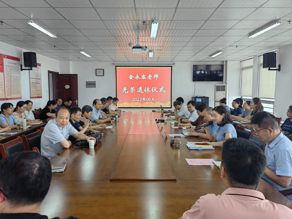 本网讯 为深入推进学习贯彻习近平新时代中国特色社会主义思想主题教育,传承为党育人、为国育才的使命,进一步加强师德师风建设,6月21日下午,数学与统计学院在行知楼1102会议室为退休教师金永容举办荣休仪式。院党委副书记、院长方东玲,党委委员、组织部部长赵帮恚,相关部门负责人出席,数学与统计学院全体教职工参加仪式,仪式由数学与统计学院党委书记穆娟主持。