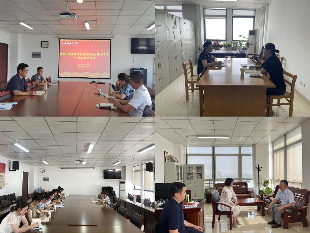 本网讯 为深入推进我院与安徽外国语学院党建结对共建工作,6月20日,我院邀请安徽外国语学院二级党组织书记来校进行“书记面对面”交流活动,院党委副书记梁立昌,安徽外国语学院党委副书记、纪委书记、副校长童祖芬出席交流活动。