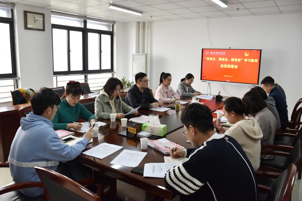 本网讯 3月31日下午,学校共青团组织“学党史、强信念、跟党走”学习教育部署动员会在锦绣校区行知楼召开。校团委全体人员、各二级学院分团委书记参加会议。会议由校团委副书记刁文彬主持。