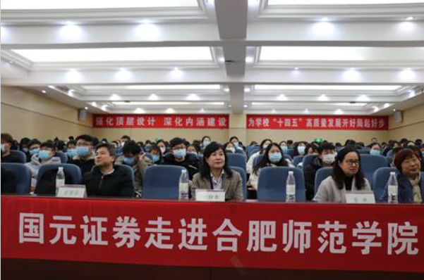 国元证券合肥芜湖路营业部经理谌星现场讲述一些基本的金融概念,梳理了适合同学们的理财方法,引导大家培养理财习惯、制定理财计划,正确投资理财。