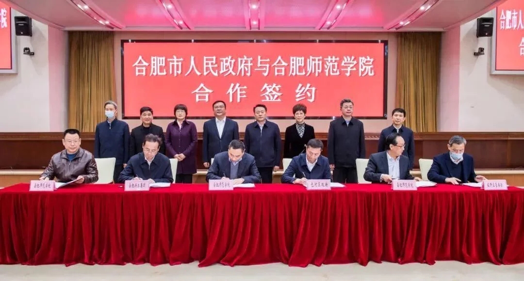 校办公室、科研处(服务地方办公室)、教务处、人事处、宣传部、基础教育改革与发展协同创新中心、经济与管理学院、生命科学学院主要负责人及合肥市发改委、教育局、科技局、经信局、财政局、人社局、文旅局、包河区政府、经开区管委会、合肥兴泰金融控股(集团)有限公司主要负责人参加签约仪式。(办公室:何磊)