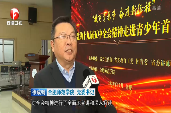 此外,12月7日上午,由我院承办的“放飞青春梦·奋进新征程”党的十九届五中全会精神走进青年首场宣讲活动在锦绣校区学术报告厅举行。中央电视台“新闻联播”在当日节目中以“创新宣讲形式让全会精神走深走实”为题对本次活动进行了报道,中央人民广播电台、人民日报、“学习强国”全国学习平台首页、安徽日报、安徽新闻联播等先后对此进行了报道。