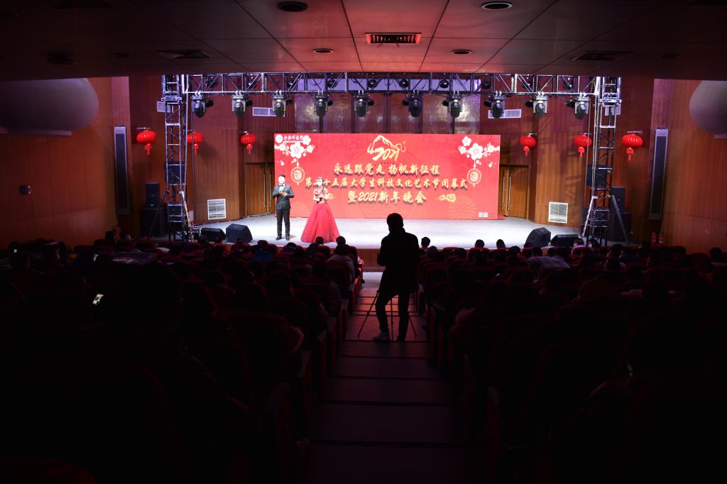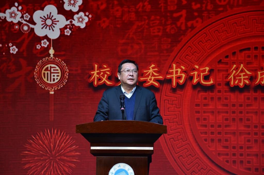 徐成钢代表学校发表了热情洋溢的新年贺词,向一年来勤奋学习、努力工作的全校师生致以美好的祝福,向精心组织、积极参与本届科技文化艺术节的老师和同学们致以诚挚的问候。他指出,2020年是学校收官“十三五”、谋划“十四五”、统筹推进常态化疫情防控与党建事业发展的不平凡之年。全校师生风雨同舟、砥砺前行,抗疫情、抓党建、促发展,各项工作取得了新的进展和成就。学校广大团学组织和青年学生在“行知学堂”、“三优”创建、创新创业等工作和中国青年志愿服务项目大赛、挑战杯、中国大学生自强之星等活动中取得了优异成绩,展现出了昂扬风貌。新的一年,学校将坚持围绕中心抓党建,持续提升师生获得感幸福感,加快构建高质量人才培养体系,全面深化地方应用型高水平大学建设。他号召全校上下以习近平新时代中国特色社会主义思想为指导,努力用劳动筑梦、用实干圆梦,共创388vip太阳集团的美好未来,以扎实业绩迎接中国共产党成立100周年。