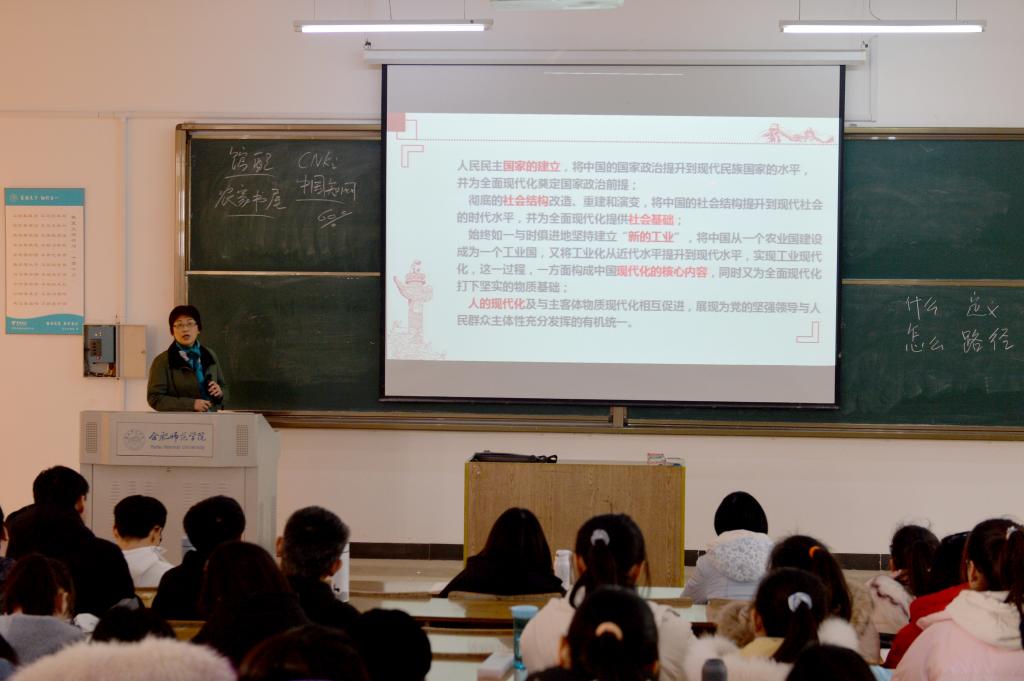 课堂讲授中,方东玲以“十四五”时期经济社会发展指导思想和必须遵循的原则为切入点,紧扣十九届五中全会精神,从现代化的理论逻辑和现实逻辑两个层面重点宣讲阐释了什么是现代化、中国走向现代化从“站起来”“富起来”和“强起来”三个阶段的中国道路以及我国建设社会主义现代化的路径选择和重要特征。结合当前常态化疫情防控、国际大环境影响以及同学们学习实际,方东玲鼓励同学们要抬头看路,积极关注党和国家的大政方针,特别是具有里程碑意义的党的十九届五中全会精神,找准自身未来发展的机遇和空间;要勤奋学习,坚定理想信念,练就过硬本领,主动将自身发展融入到党和国家的事业发展大局中,努力肩负起未来国家建设的重任,为实现社会主义现代化作应有的贡献。
