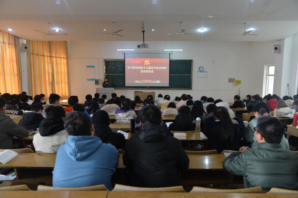 本网讯 为进一步落实中央、省委、省委教育工委以及学校党委关于开展党的十九届五中全会精神学习宣讲和高校党政领导干部带头讲好思政课的工作要求,推动全会精神进课堂、进头脑,12月22日上午,党委副书记、院长方东玲教授深入课堂一线,在锦绣校区博约楼201教室为120余名同学上了一堂专题思政课。