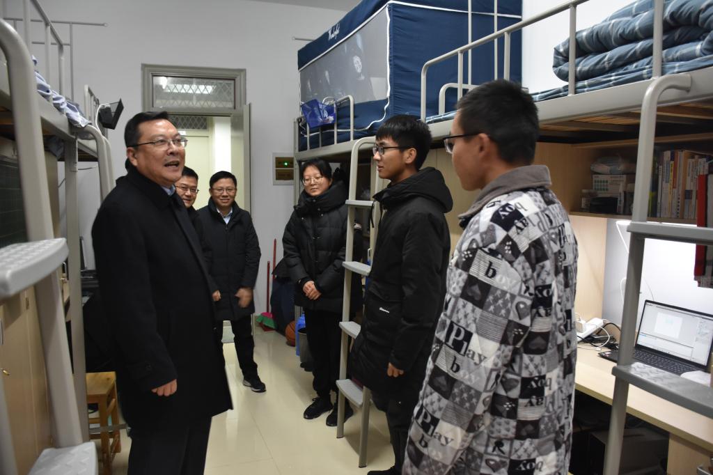 本网讯 12月13日晚,我省迎来入冬第一场雪,雪花漫舞中,校园披上了银装,同时,也带来了气温的再次下降。瑞雪带来了新年的脚步,更牵动着院领导对驻值滨湖校区全体师生的关心。14日、16日,院党委书记徐成钢两次前往滨湖校区看望慰问师生,党委委员、宣传部部长操申斌,党委委员、统战部长、滨湖办主任赵帮恚,宣传部副部长赵波等参加慰问。