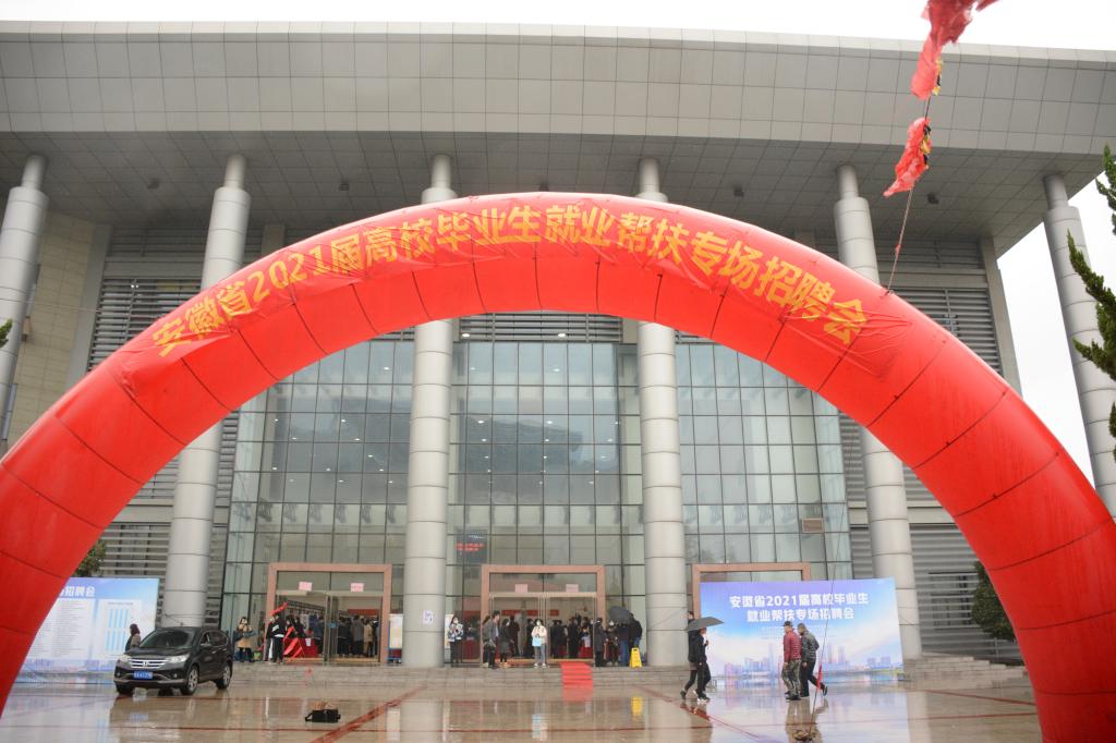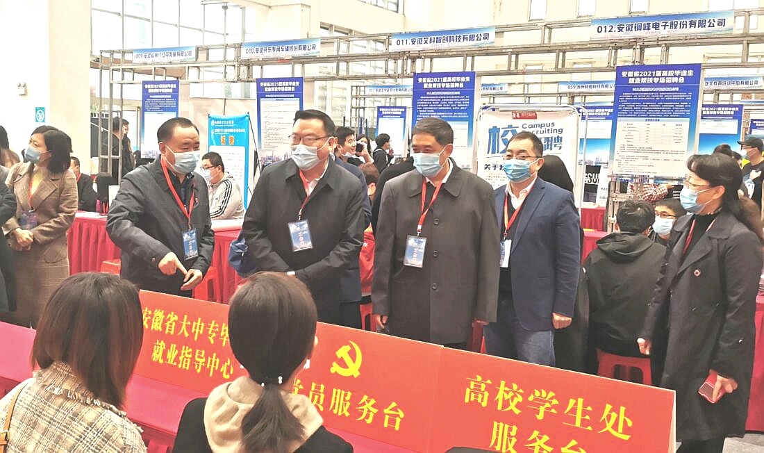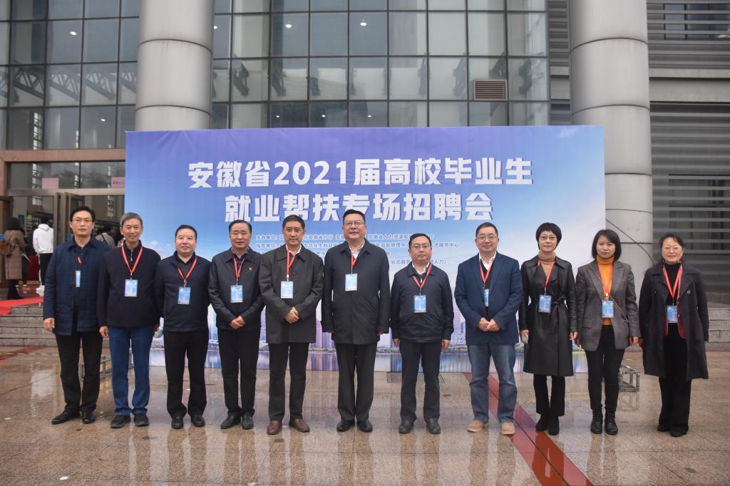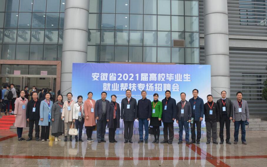 本网讯 为深入贯彻落实党中央、国务院及省委、省政府“六稳”“六保”决策部署和就业优先政策,进一步发挥高校在巩固就业扶贫工作成果中的作用,持续做好2021届高校毕业生就业帮扶工作,11月21日上午,由国家开发银行安徽省分行、省教育厅、省人力资源和社会保障厅主办,省大中专毕业生就业指导中心、省学生资助管理中心、省人才服务中心指导的安徽省2021届高校毕业生就业帮扶专场招聘会在我院锦绣校区体育馆成功举行。省教育厅高校学生处处长陈锋,学生资助管理中心主任李炳银,大中专毕业生就业指导中心主任袁江林、副主任王素苗,省人社厅就业促进和失业保险处处长吕泉,省人才服务中心副主任余松柏,国开行客户四处处长杨毅,正德人力集团董事长管政和我院党委书记徐成钢,副院长谢阳群,以及相关部门负责人、各二级学院党政负责同志等到会指导并巡视了招聘会现场。