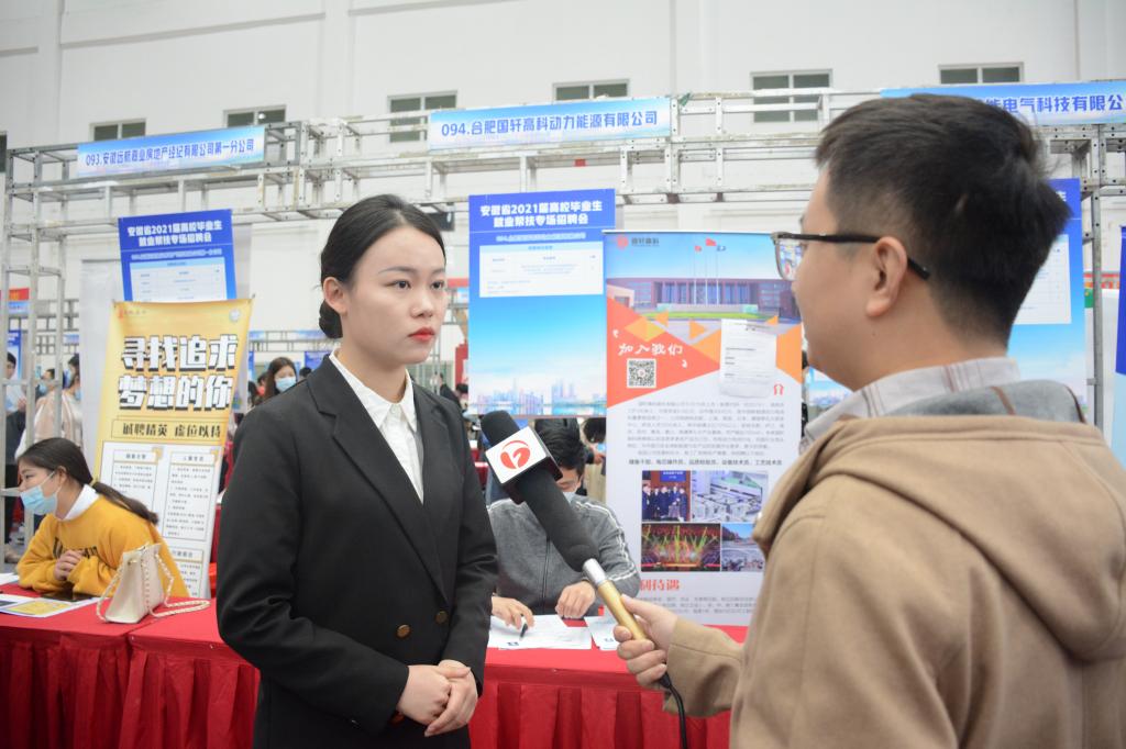 当天上午,低温和小雨丝毫没有阻挡用人单位求贤若渴和毕业生求职的热情,用人单位早早便来到各自的展位前虚位以待,省内各高校的毕业生们也分批进入招聘场地应聘,现场气氛热烈。来自淮南师范学院计算机学院网络工程专业2021届毕业生刘军辉同学表示,本次招聘会想找到一份适合自己的工作,因为适合自己的工作才能做得长久。来自安徽中医药大学中医学专业的石露露同学表示,自己即将于明年六月份毕业,参加此次招聘会主要是想提前体验一下后疫情时代的招聘氛围和流程,了解关于医疗方面的工作。新宇药业股份有限公司招聘负责人侯锐表示,公司是从事微生物药物研发、生产、销售的综合性原料药制造商,目前主要招聘的岗位为生物与化学相关专业,招聘的学生主要为本科生和研究生,对于应届生更看重的是他们的学习能力、适应能力和上进心,同时也希望更多的学生能拓宽个人的研究方向,全方面发展自己的专业特长。