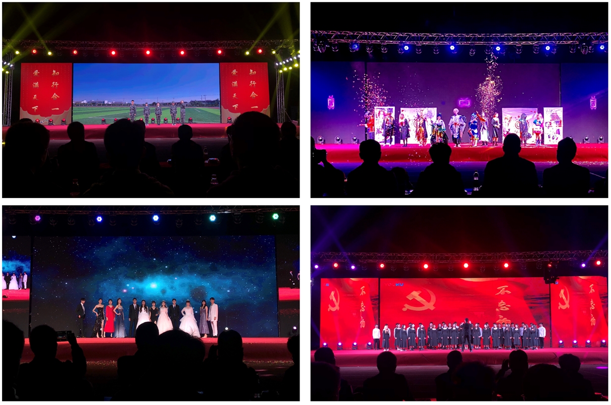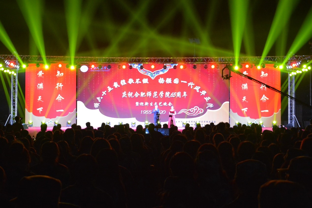 本网讯 10月18日晚,由校团委主办,学生社团文化服务中心承办的庆祝建校65周年暨2020年迎新生文艺晚会于滨湖校区体育场隆重举行。副院长谢阳群,滨湖校区综合管理办公室、学生工作处、教务处、保卫处、后勤处等单位主要负责人,滨湖校区辅导员及近5000名同学到场观看晚会。