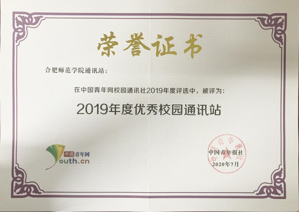 本网讯 近日,由中国青年网主办的“中国青年网校园通讯社2019年度评选活动”结果揭晓,我校校园通讯站获评“优秀校园通讯站”,校团委王露获评“优秀通讯站指导教师”,合师青年传媒中心黄慧同学获评“优秀通讯员”。