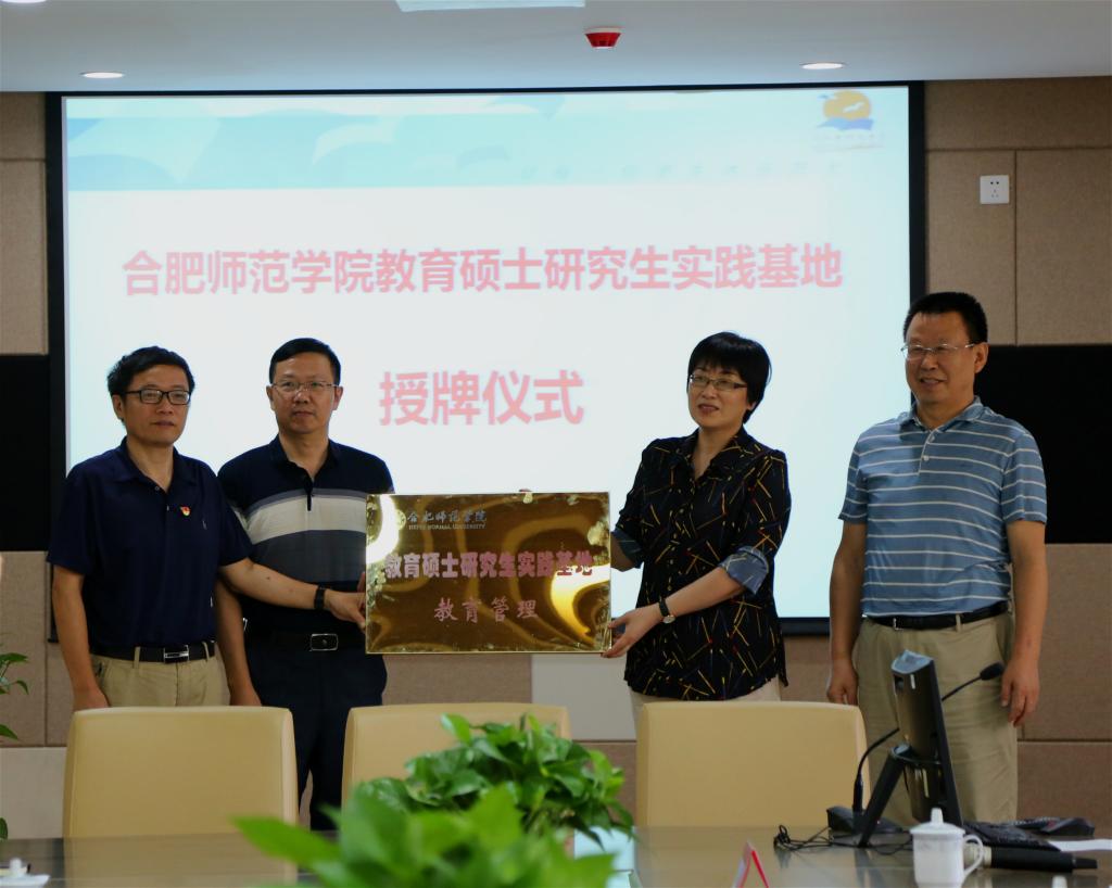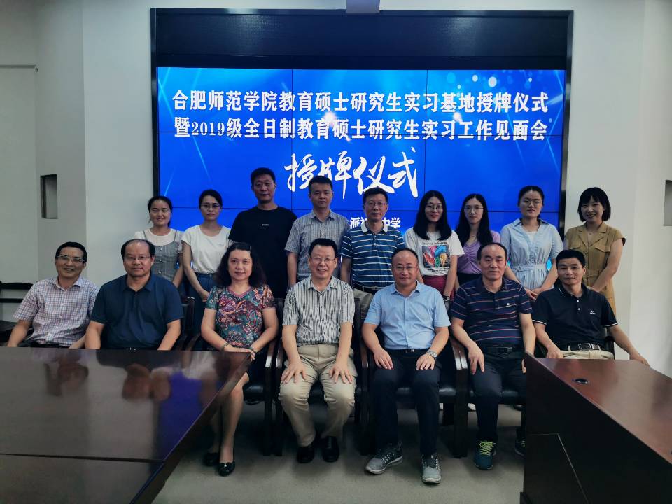 本网讯 近日,由党委副书记、院长方东玲,党委委员、副院长曹卓良带队,研究生处及相关研究生培养学院负责同志参加,分别赴肥西上派初级中学、一六八中学、四十六中学和阳光中学等学校调研了解2019级教育硕士研究生实习情况并举行教育硕士研究生实践基地授牌仪式。