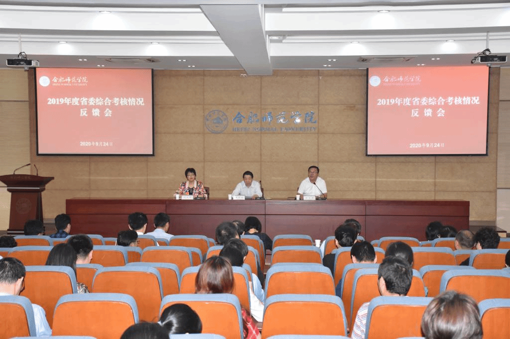 本网讯 9月24日,根据省委综合考核工作统一部署,省委综合考核组第十四组副组长、省委教育工委委员、省教育厅副厅长储常连,省委组织部人才工作处四级调研员宋海林,省教育厅高教处一级主任科员蒋正飞代表考核组来院反馈2019年度学院领导班子和班子成员综合考核情况。院领导徐成钢、方东玲、李进华、吴昕春、姚本先、曹卓良、徐文林参加会议。会议由党委书记徐成钢主持。
