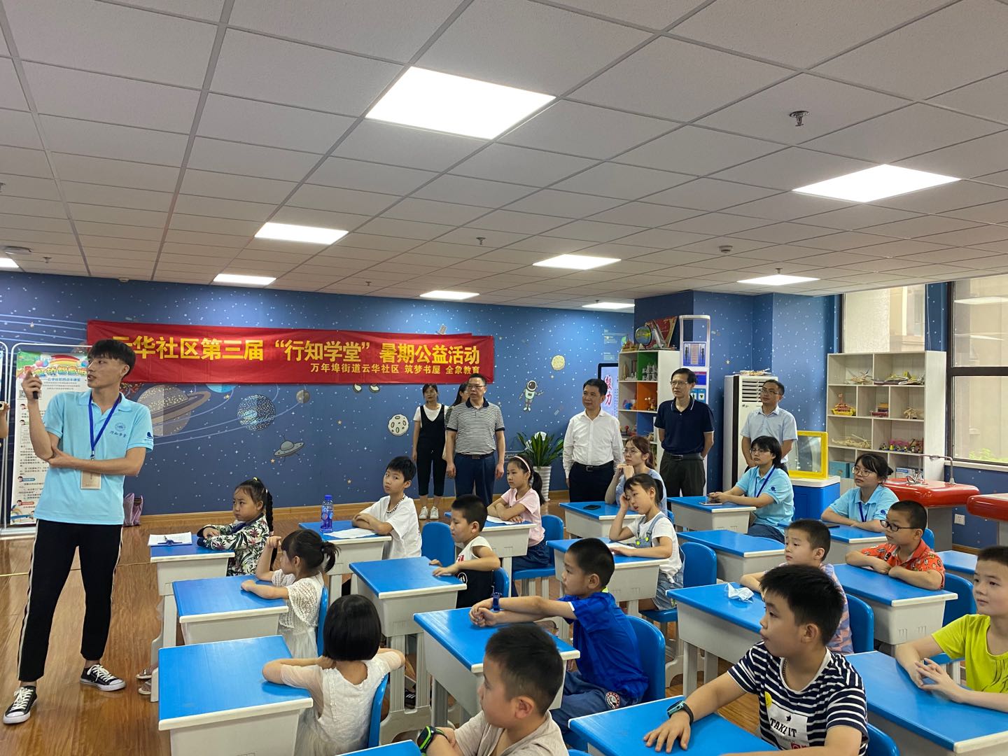 课程结束后,徐文林一行与小先生们进行了亲切交谈,详细询问了学堂招生、上课和活动开展情况以及小先生的来回交通和生活情况。随后,徐文林一行与云华社区负责同志进行了交流。徐文林首先对社区给予的大力支持表示感谢,并表示暑期“行知学堂”主要目的在于让学生深入社会,了解社会,服务社会,在传播知识的同时提升自己,培育和践行社会主义核心价值观。