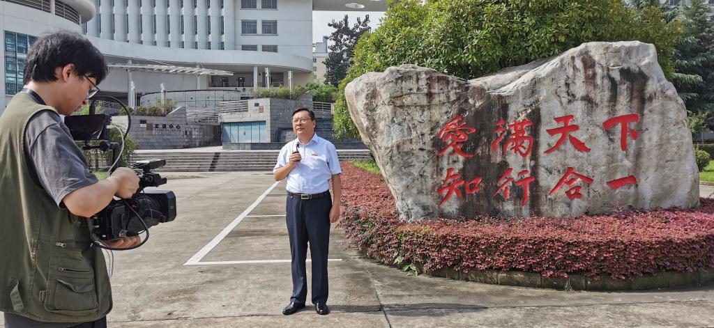 本网讯 爱满天下奉献桑梓,知行合一乐育英才。7月25日上午,“2020高校招生服务光明大直播”走进我院,通过手机直播的方式云游合师校园,虎牙正能量、YY直播间等平台同步进行直播,对学院人才培养、招生政策、专业特色、科研平台、校园文化等进行全方位立体解读,吸引了全国159.5万人次在线观看。