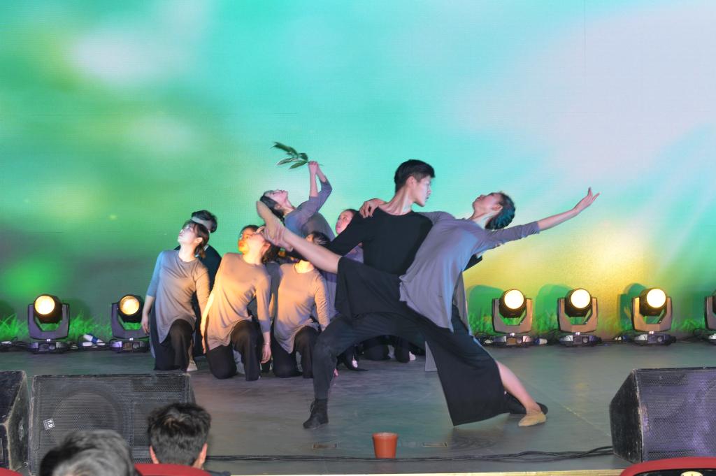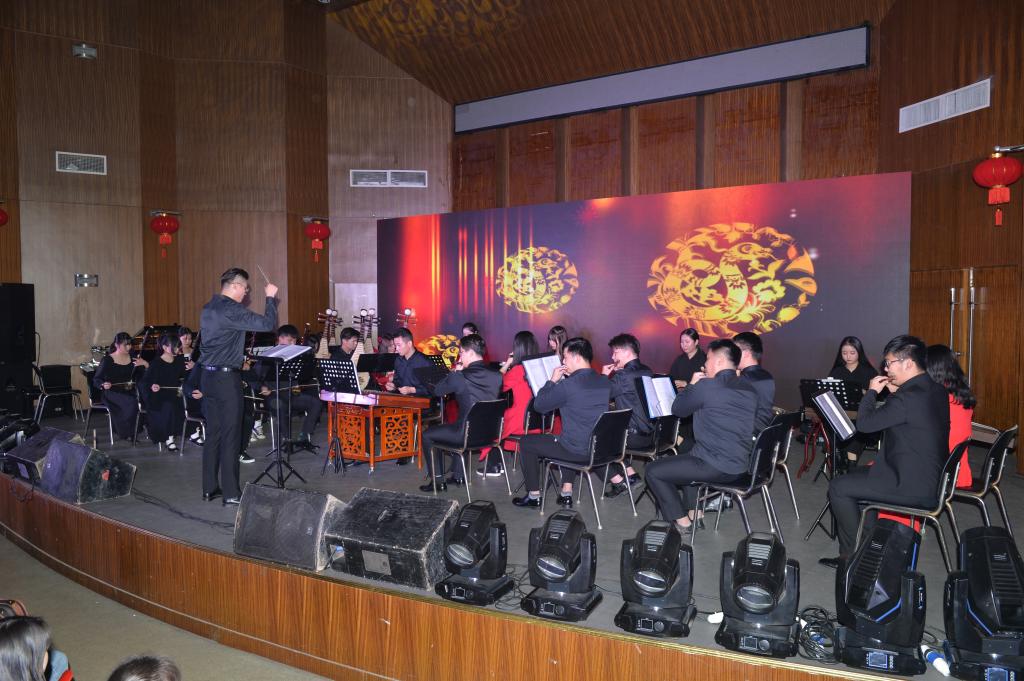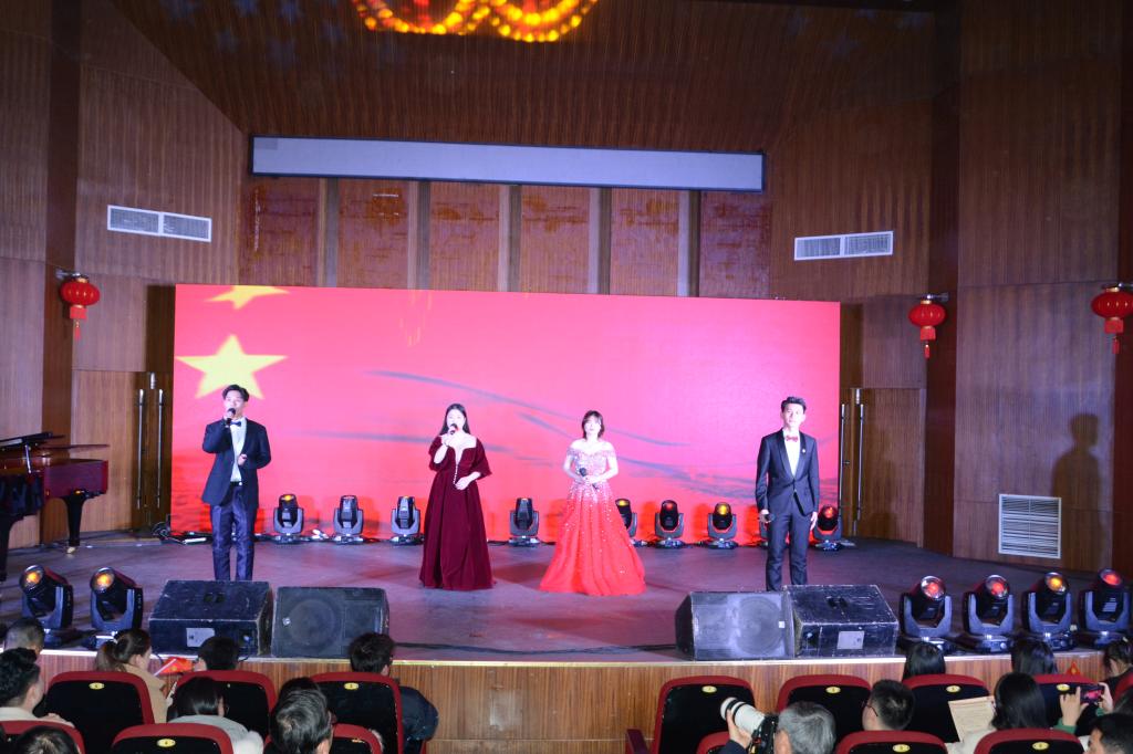 音乐学院民乐团的合奏《喜洋洋》,营造了喜庆、美好、温暖、和谐的氛围,拉开了晚会的序幕。教师教育学院的舞蹈《茉莉花开》,舞步轻盈,带来一阵清新的气息。来自滨湖校区的院团委学生干部们豪迈的朗诵《四季行知》,让观众们仿佛跟随着陶行知先生的脚步走过四季,歌颂了合师人对于行知精神的弘扬和传承。十佳歌手带来歌曲串烧《岁月金曲》,用四首不同时期的经典歌曲演绎了中国人民从站起来到富起来,再到强起来的光辉历程,展现了进入新时代的青年朝气蓬勃、积极奋进的精神风貌。大学生艺术团的现代舞《青禾》,用优美的舞姿展现青禾在逆境中成长,表达了奋斗、朝气、希望的元素。音乐学院学生党支部的合唱《七子之歌》《红旗飘飘》,用天籁之音庆祝澳门回归20周年,表达作为一名中国人深厚的爱国情怀和强烈的民族自豪感。SKY街舞社的街舞《Dream of the motherland》,动感的节奏、时尚的舞步,向以钱学森为代表的海归知识分子们致敬。教师教育学院王磊老师和唐银老师的歌曲《不忘初心》,歌声动人心弦、激越昂扬,引起在场每一位观众的共鸣。体育科学学院的民族舞《映山红》,淋漓尽致展现出合师学子一心向党、勇担使命的责任感。新年晚会在院学生会的歌曲《我和我的祖国》动人的歌声中落下帷幕。晚会现场,一面面鲜艳的五星红旗、一首首动听而熟悉的红色歌曲,营造出浓烈的爱国氛围,鲜明地体现了庆祝新中国成立70周年的主题,为全体观众上了一堂生动的思想政治理论课。