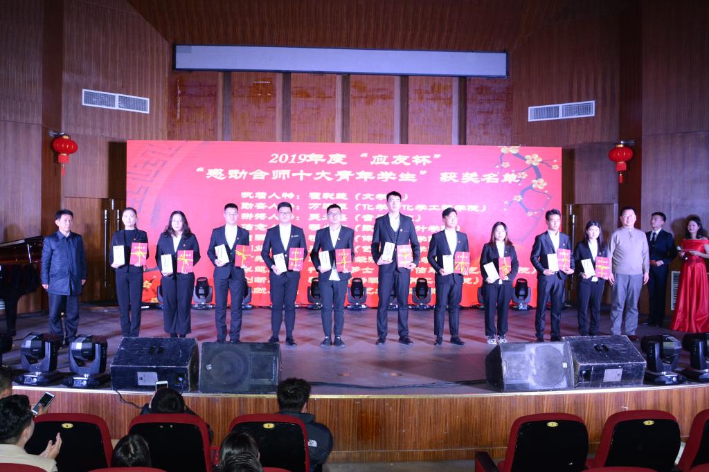 副院长曹卓良、纪委书记徐文林为2019年度“感动合师十大青年学生”颁奖