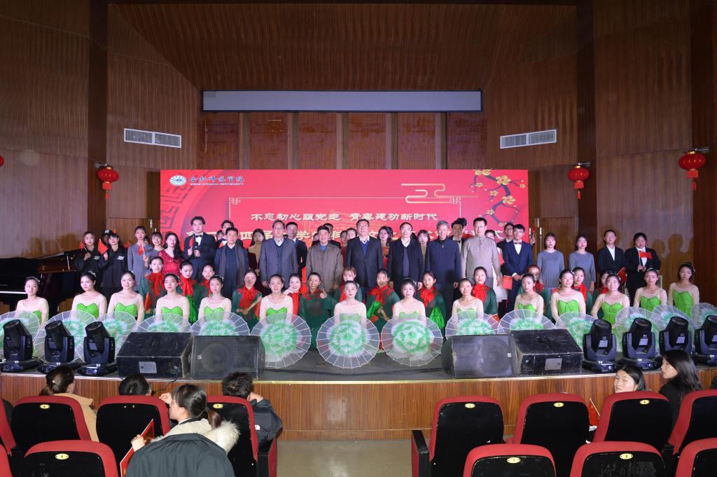 院领导为受表彰的集体和个人颁奖,并在演出结束后与全体演出人员合影留念。(院团委学生记者:秦晶晶 温斌/文 新闻中心:临河 院团委学生记者:刘宇 新闻中心学生记者:方文韬/图)