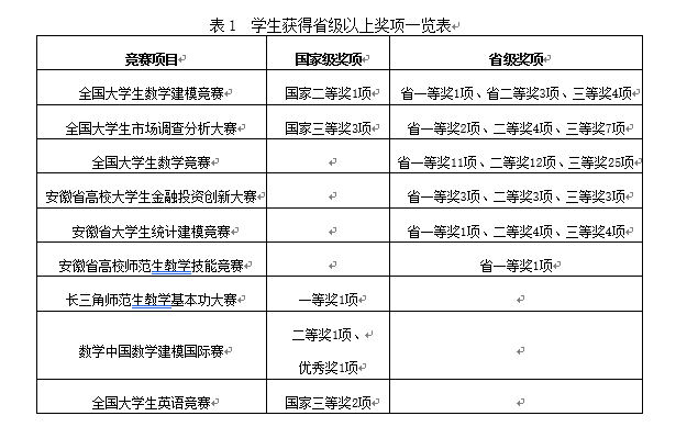 值得一提的是,在2019年安徽省师范生技能竞赛中学院陈瑾琨同学凭借扎实的教学基本功荣获中学数学组一等奖并代表学校参加首届长三角师范生教学基本功大赛,获得中学数学组一等奖。