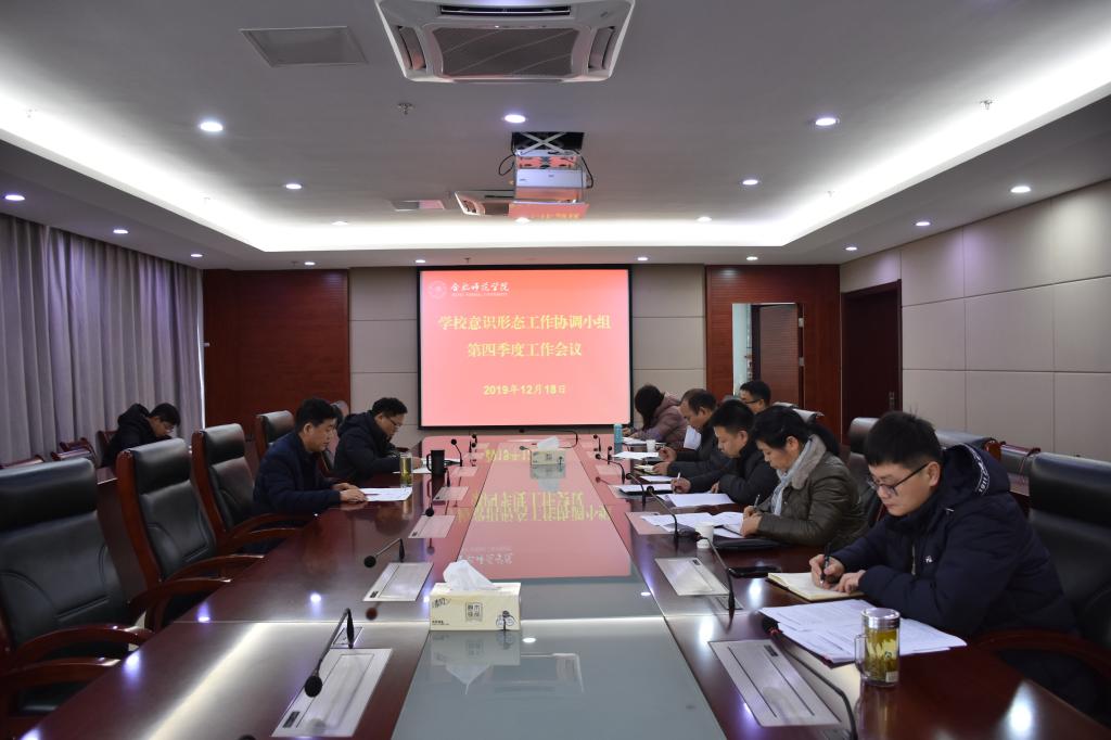 本网讯 12月18日上午,学院在行知楼第二会议室召开意识形态工作协调小组第四季度工作会议。党委副书记吴昕春出席会议并讲话,学院意识形态工作协调小组成员单位负责人参加会议。会议由党委委员、宣传部部长操申斌主持。
