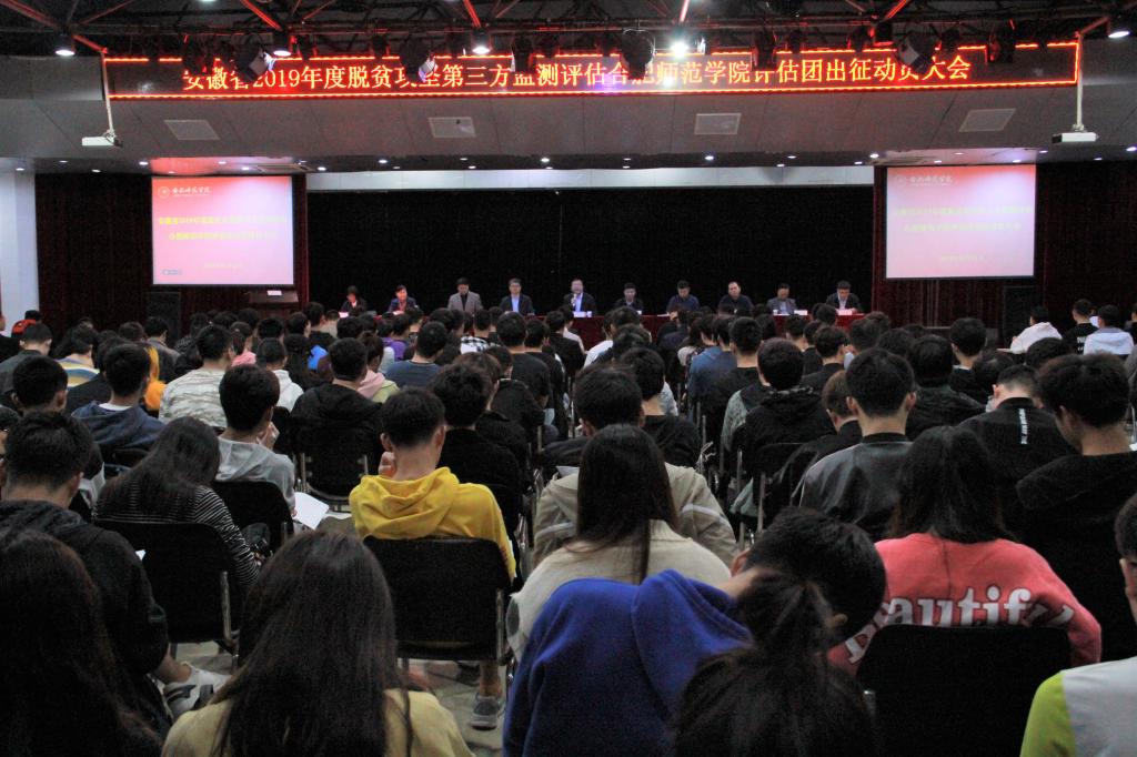 徐成钢代表学院作动员讲话。他指出,在全院上下深入开展“不忘初心、牢记使命”主题教育之际,我院338名师生带着初心和使命再一次即将出发,连续第四年承担脱贫攻坚第三方监测评估工作,这充分体现了省委、省政府、省扶贫办对我院师生的高度信任,是对我院过去三年工作成效的充分肯定。他代表学院党委和行政向即将出征的师生提出三点要求:一要提高政治站位,彰显使命担当。承担这项工作任务是学院贯彻落实党的十九届四中全会精神,深化“不忘初心、牢记使命”主题教育成果,全面推进“三全育人”综合改革,服务地方经济社会发展的重要举措;也是广大师生深刻体验新中国成立70周年来中国和安徽农村发生的巨大变化,深入了解党和政府带领人民大力推进脱贫攻坚工作取得的非凡成就,培养“自找苦吃”的奋斗精神,进一步增强“四个自信”的一堂生动的思想政治理论课。要切实提高政治站位,在思想上充分认识到这是一项重要的政治任务,牢固树立起责任感、使命感、荣誉感,认真学习工作政策,明确工作职责,掌握工作方法,敢于担当作为,积极投身实践,确保顺利完成工作任务。二要把握工作要求,确保取得实效。全体参评师生要认真学习习近平总书记关于扶贫工作重要论述,熟悉掌握脱贫攻坚有关政策,夯实自身的理论基础;要深入研究第三方监测评估实施方案,学懂吃透《培训资料》,切实做到将评估的重点内容烂熟于心;要注意工作方式方法,入户访谈时要把贫困户当作自己的亲人,带着感情去工作,树立良好的队伍形象;要明确把握工作标准和关键环节,做到以事实为依据,以数据为支撑,确保评估结论的专业性、权威性和客观性,提升监测评估质量和效果,让基层政府、人民群众真心认帐、心服口服,确保脱贫成果经得起国家考核和实践检验。三要严明工作纪律,保障师生安全。要提高思想认识,强化纪律观念。培训期间要遵守学习纪律,全程全身心参加培训,确保培训效果,为后期迅速进入工作状态奠定良好基础。工作期间要坚持实事求是、客观公正的原则,按照工作规程,独立公正、客观真实、严谨规范地开展工作;要严格遵守中央八项规定精神和省里的有关要求,严格执行保密等相关纪律要求,做到风清气正,树立学院良好的社会形象。相关部门要切实做好师生出行开展工作的安全防范和后勤保障工作,各带队老师要持续细致地加强对学生人身、财产、交通等各方面的安全教育,确保安全、稳定、圆满地完成工作任务。他强调,参评师生要进一步强化责任、勇于担当、求真务实、精益求精,不断提升工作质量,在投身脱贫攻坚第三方监测评估的生动实践中弘扬社会主义核心价值观,践行“爱满天下、知行合一”的校训精神,为建设现代化五大发展美好安徽、奋力夺取全面建成小康社会决胜阶段新胜利贡献出388vip太阳集团的力量。
